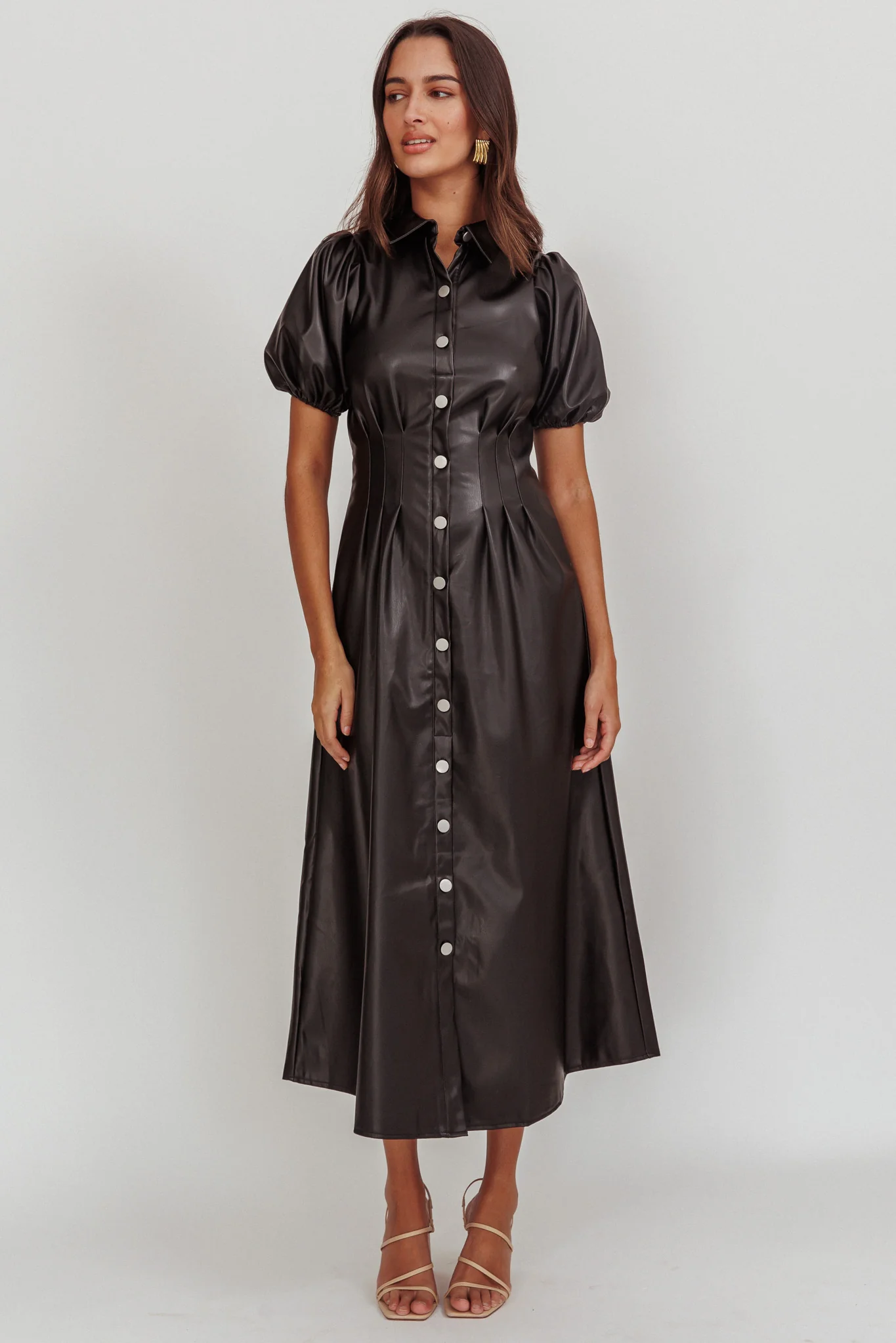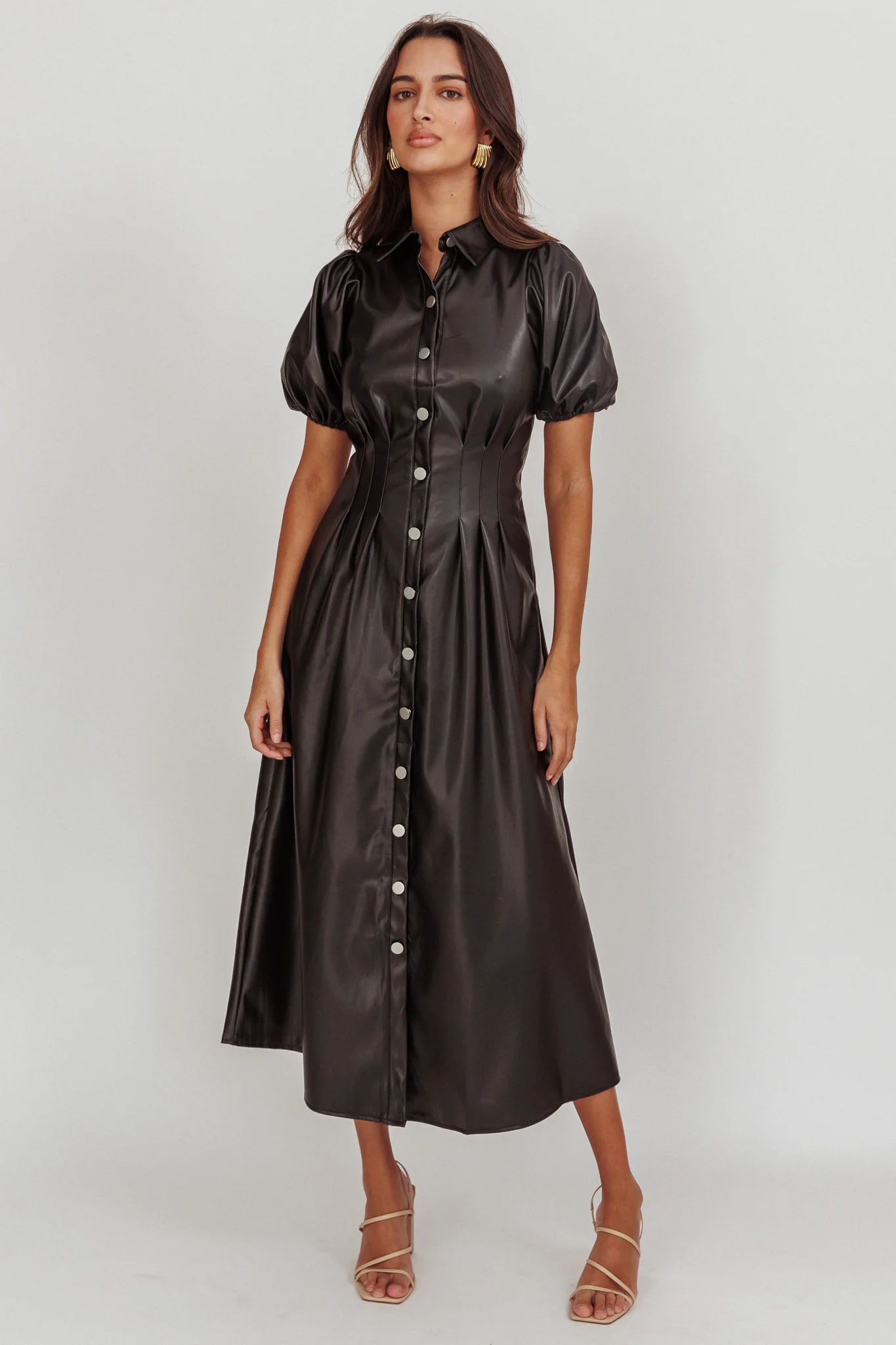 Zurich A-line Puff Sleeve Midi Dress Nude