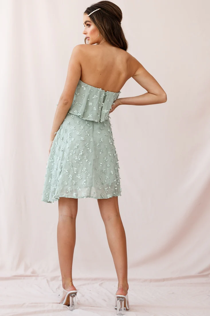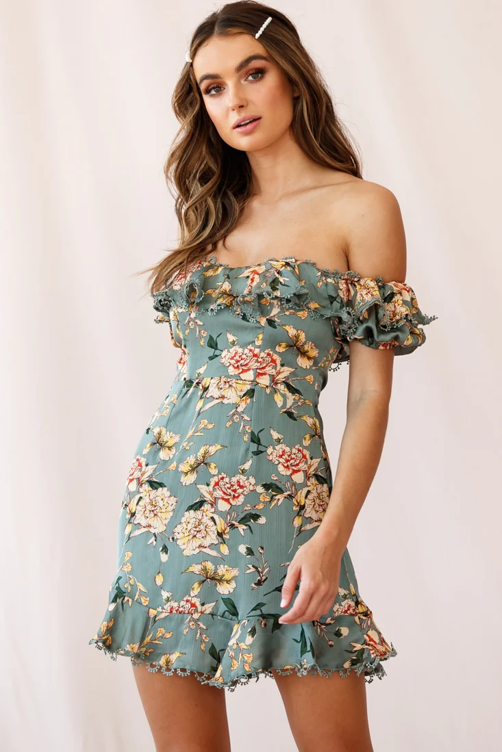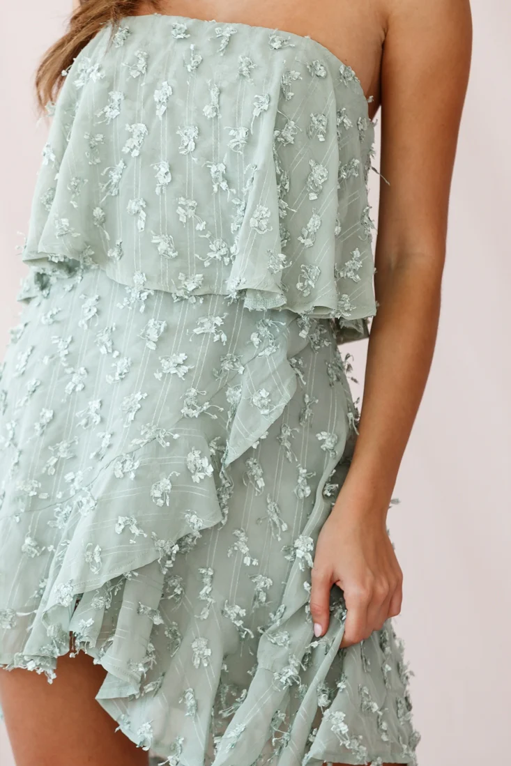 Ari Ruffle Crochet Detail Mini Dress Forest Green