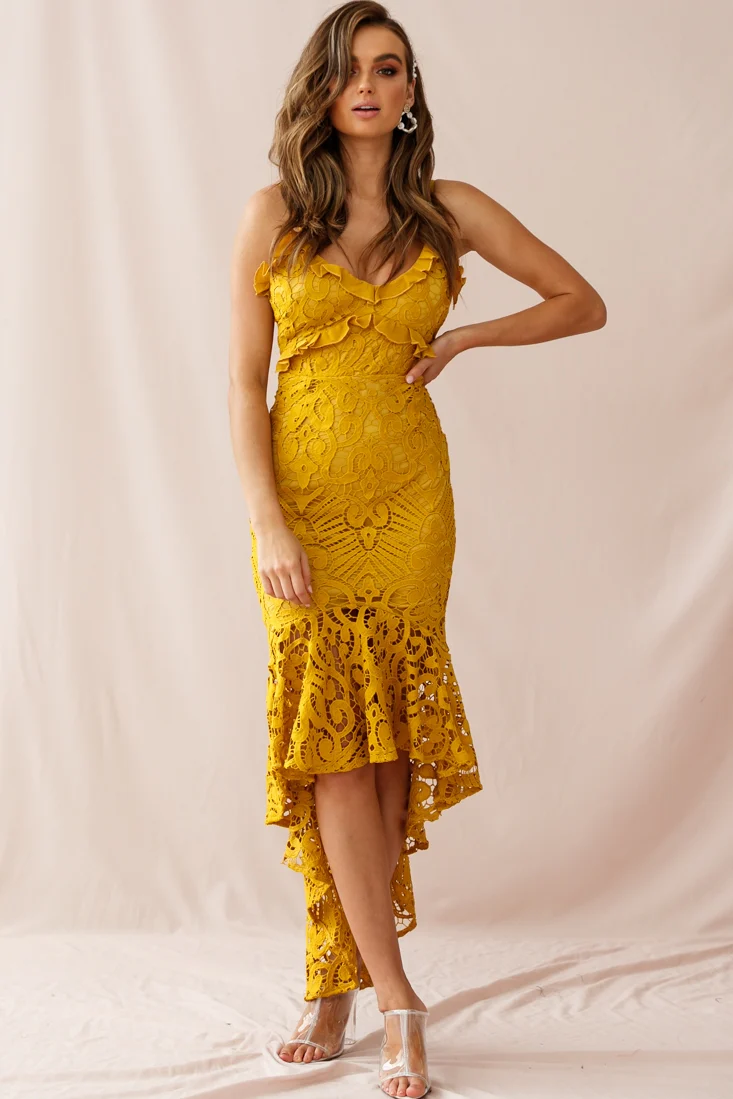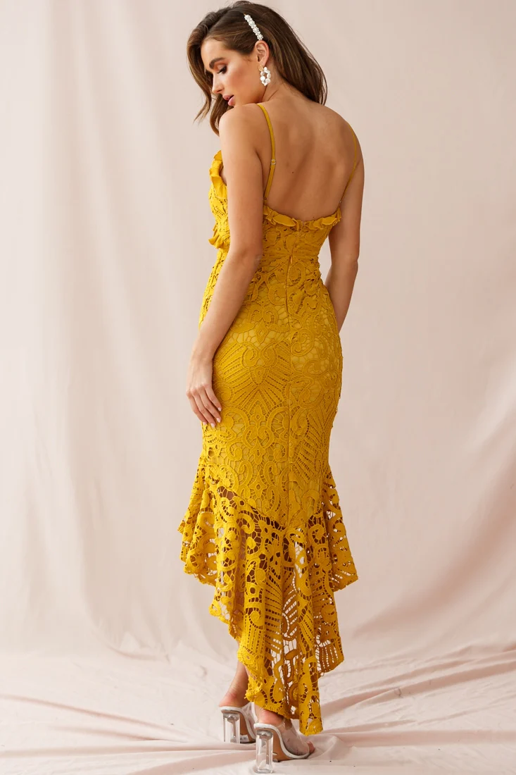 Greta Tiered Ruffle Chiffon Dress Mustard