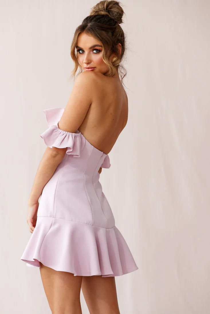 Ondine Bardot Neckline Fluted Hem Dress Mauve