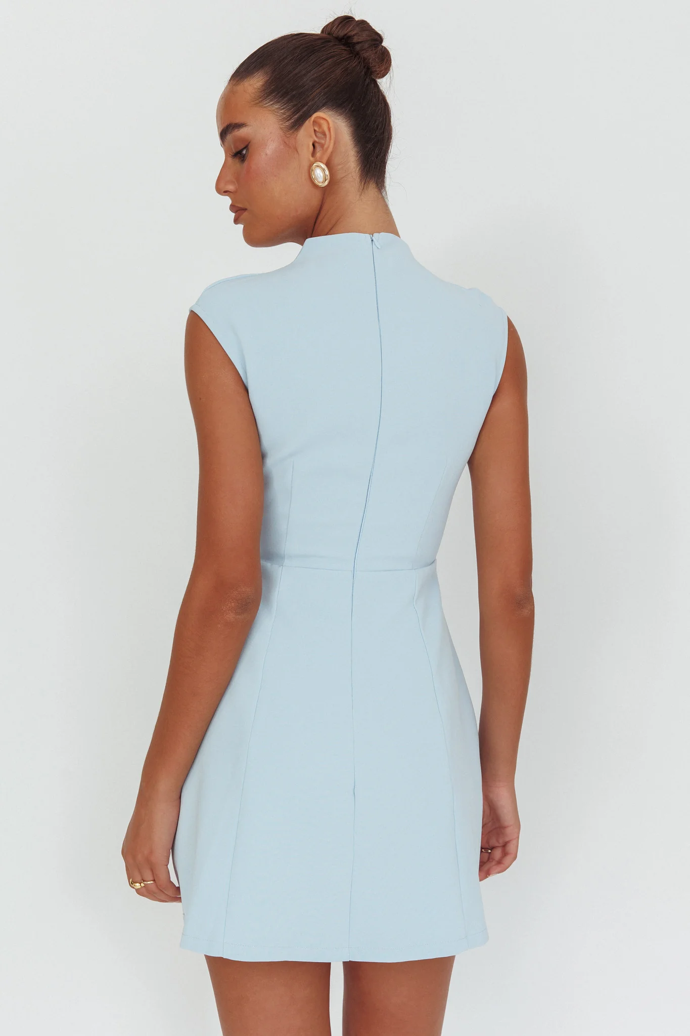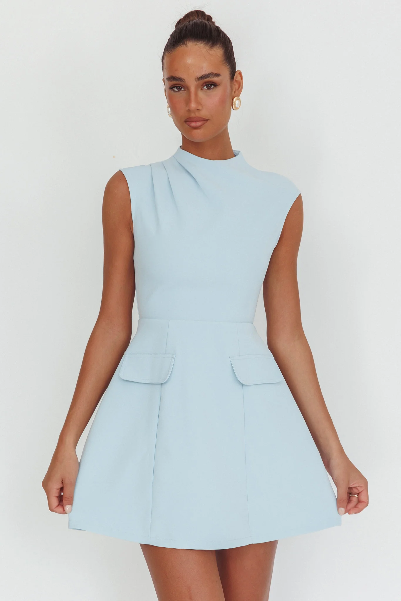 Thandi Pleat Shoulder Faux Pocket Mini Dress Steel Blue