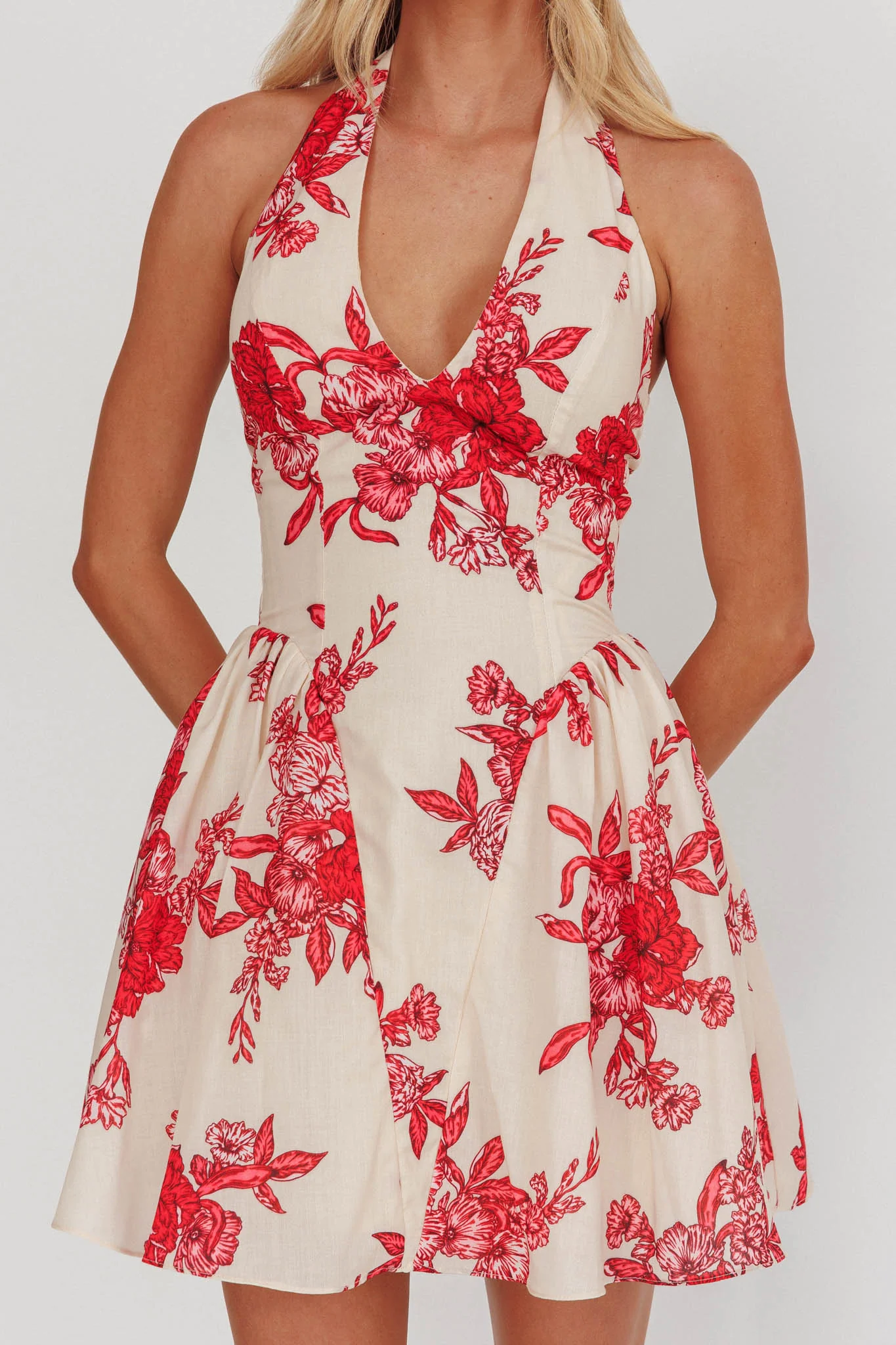El Corazon Halterneck Mini Dress Floral Red