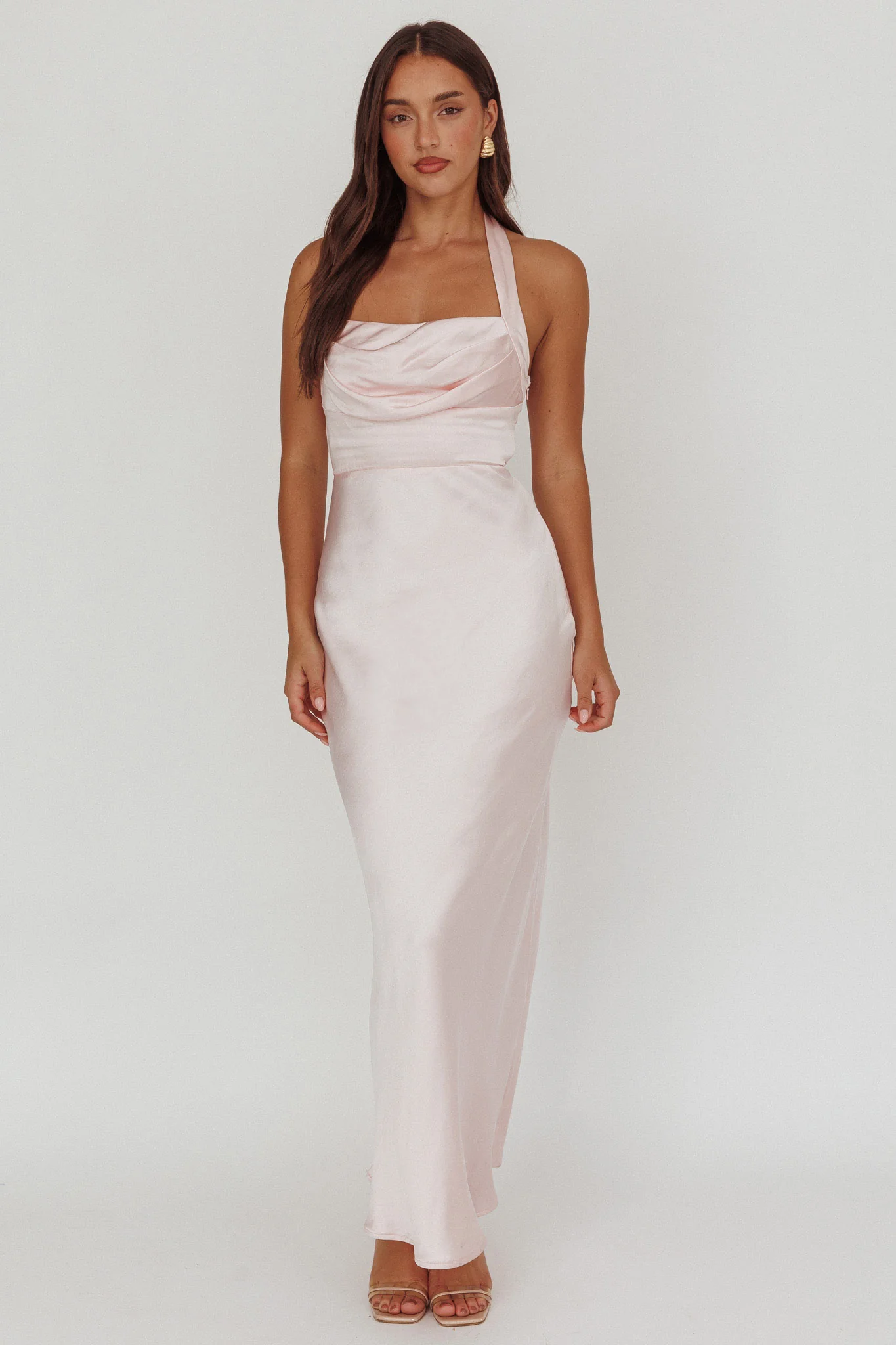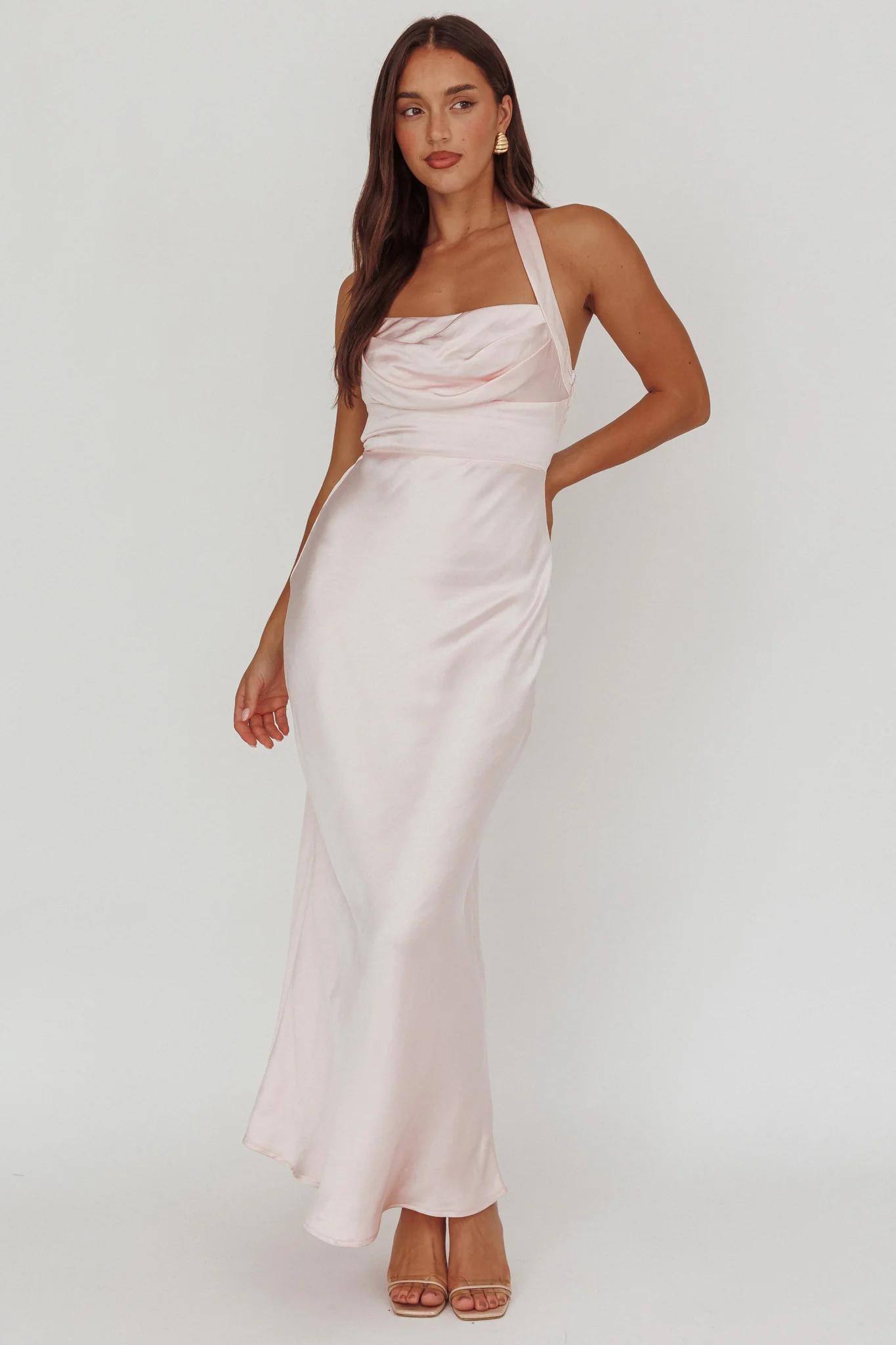 Hey Girl Long Satin Cowl Neck Dress Champagne