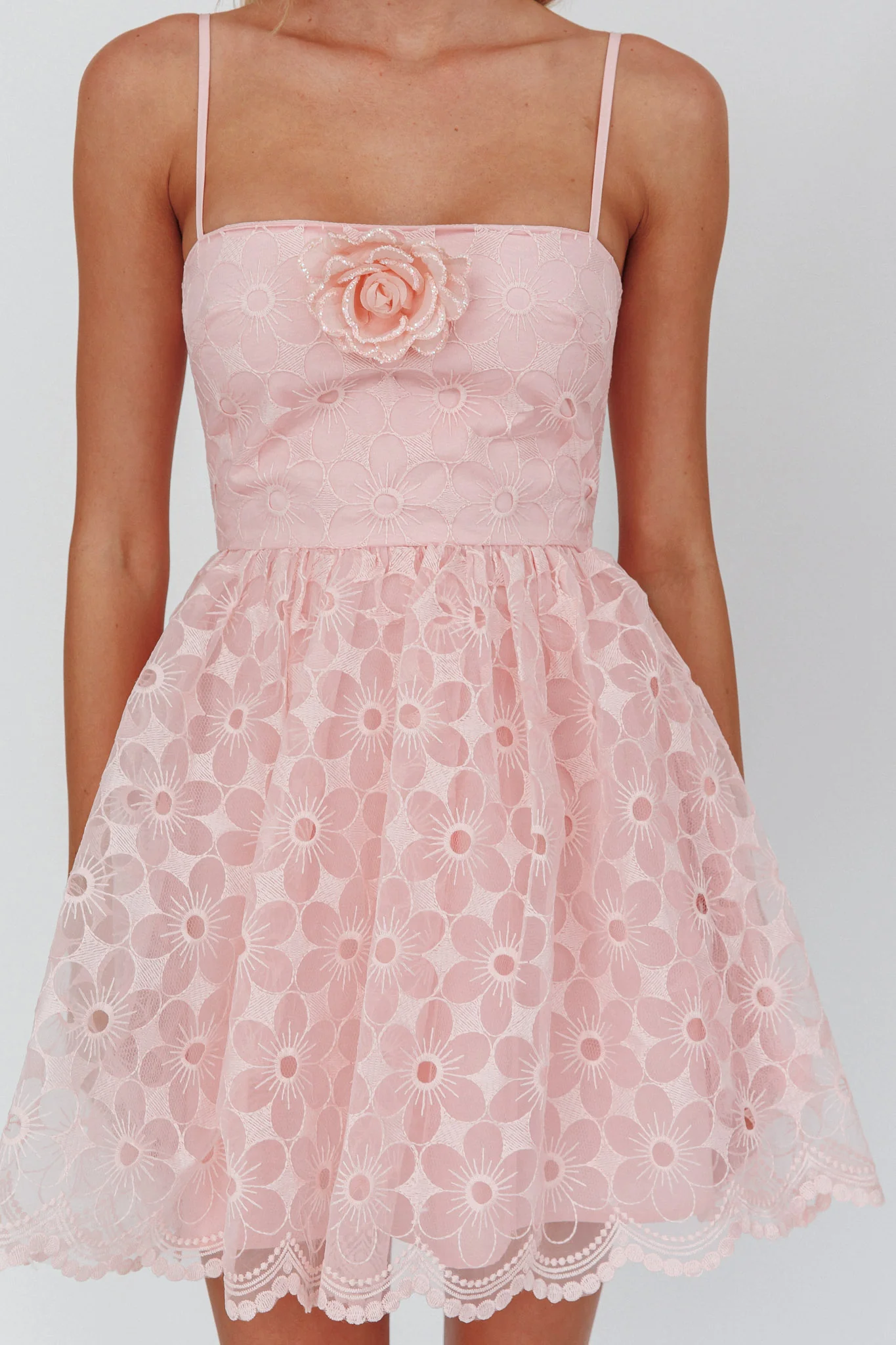 Bahia A-Line Square Neckline Mini Dress Lace Blush