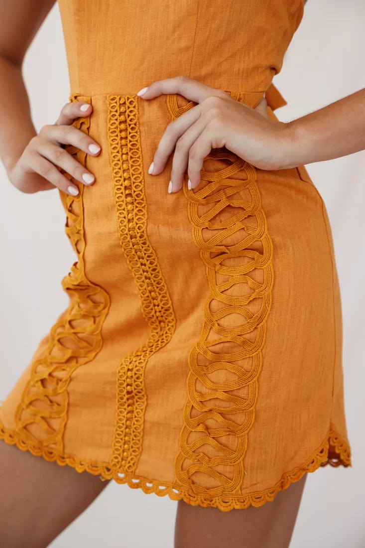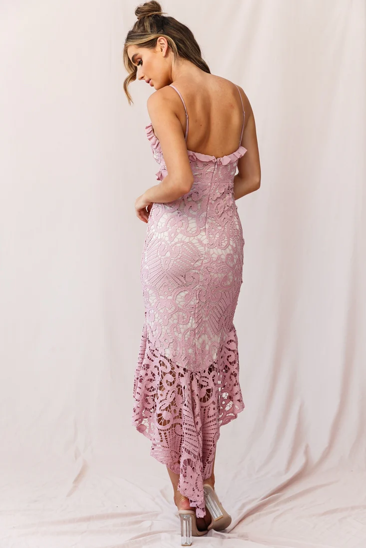 Ari Ruffle Crochet Detail Mini Dress Blush