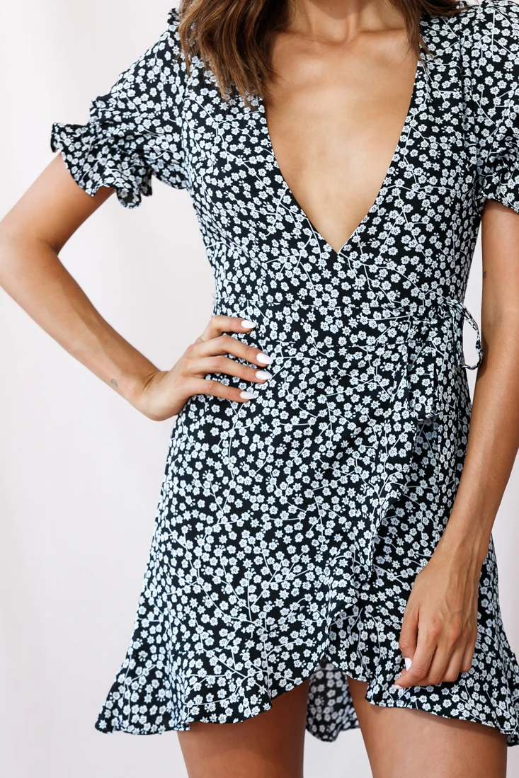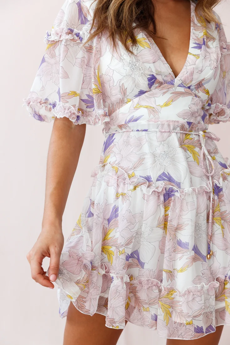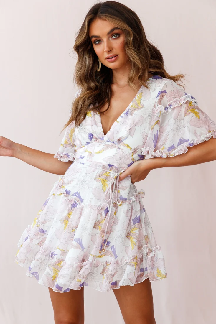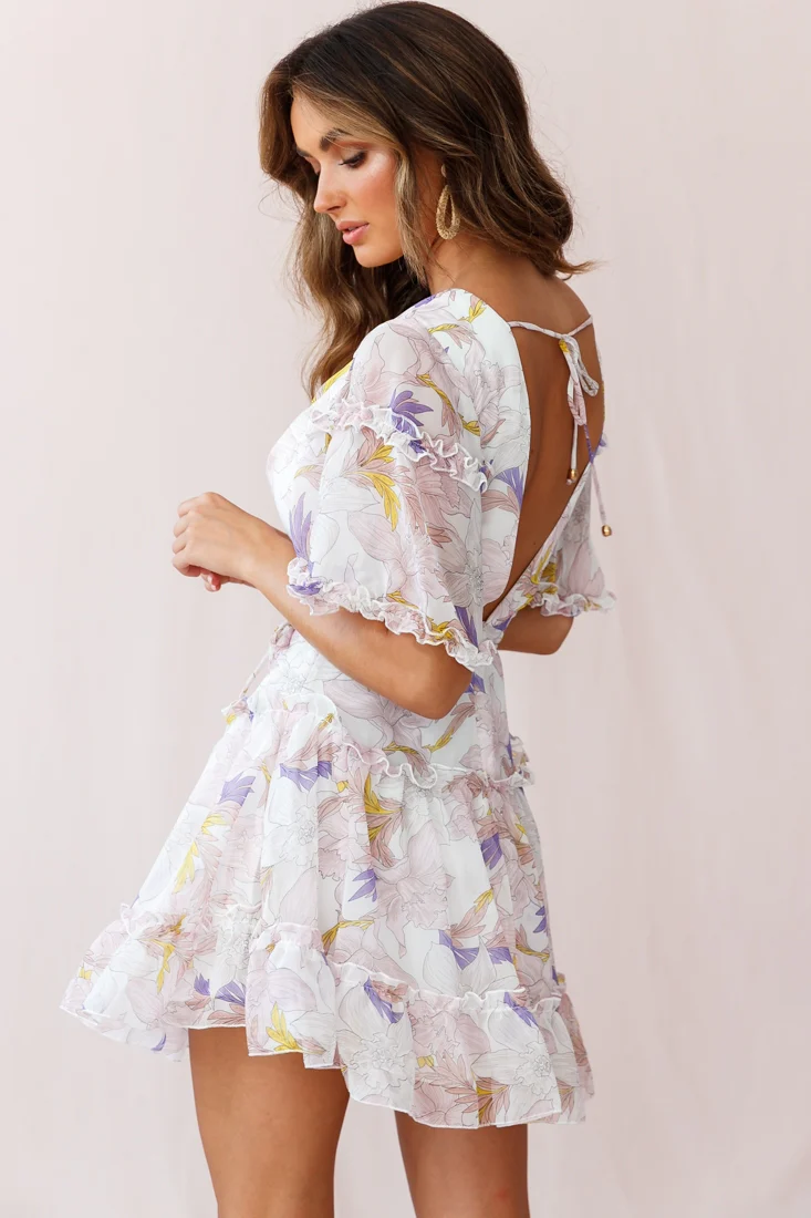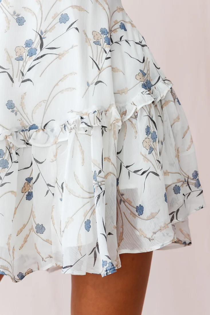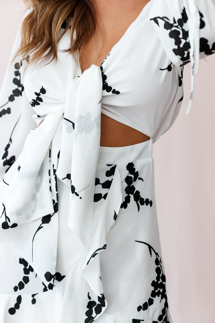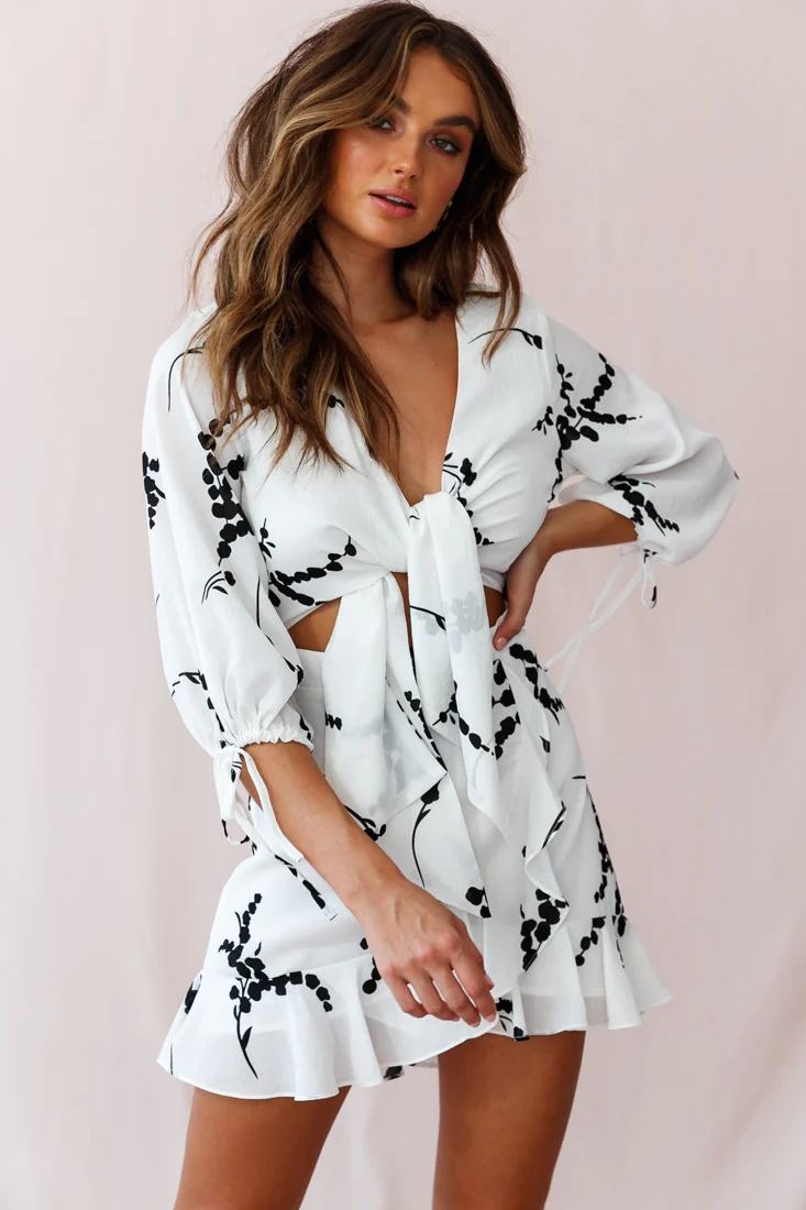 Hope Tie-Knot Bust Mini Dress Leaf Print White
