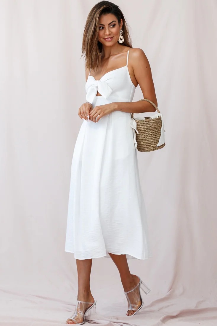 Come Hither Wrap Front Lace-Up Bust Dress White