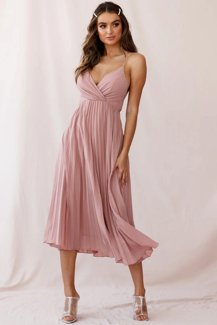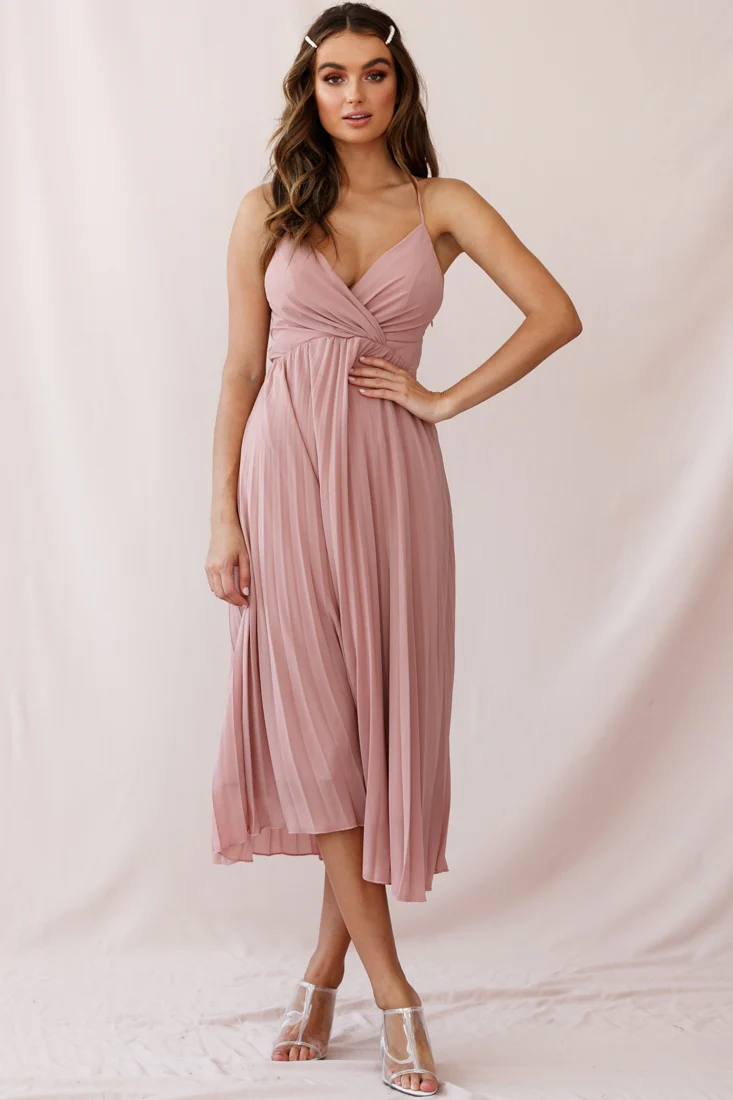 Artemis Accordion Pleat Strappy Back Midi Dress Blush