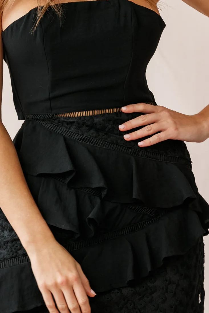 Aramis Strapless Lace & Ruffle Detail Dress Black