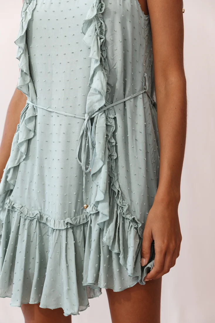 Oui Oui Wrap Ruffle Dress Sage