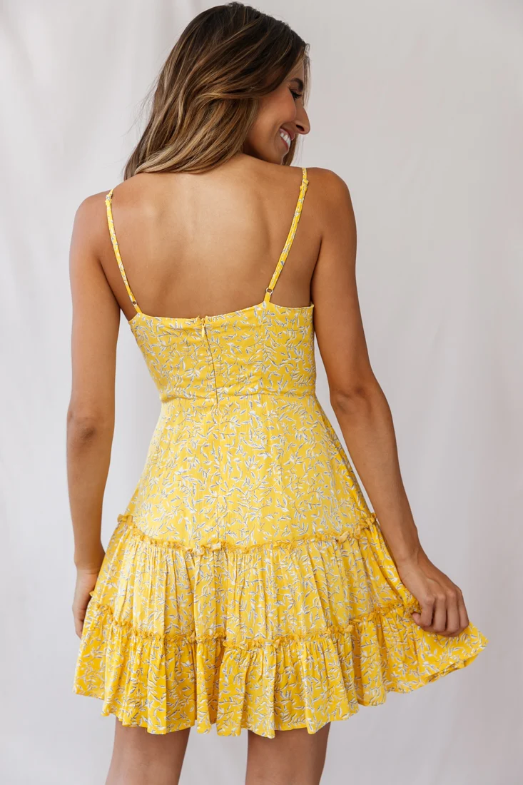 Rikki Layered Ruffle Bust-Tie Dress Mustard
