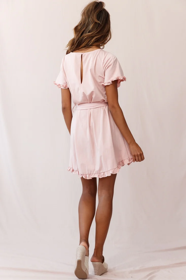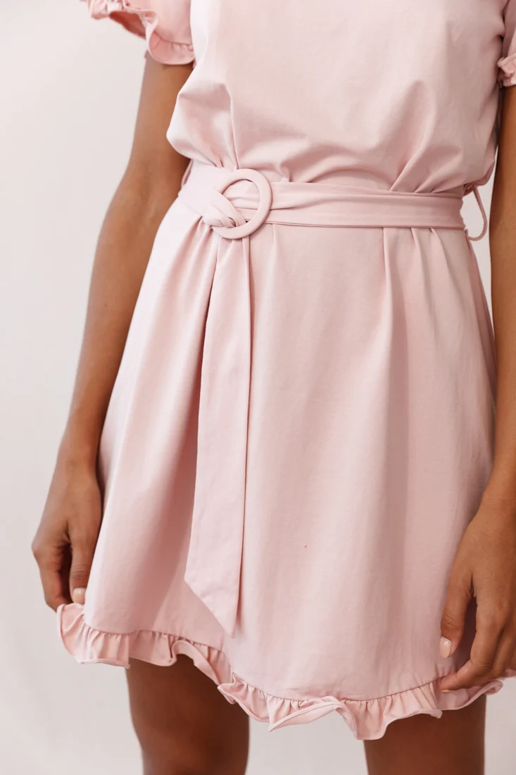 Petrie Ruffle Detail Waist Tie Dress Blush