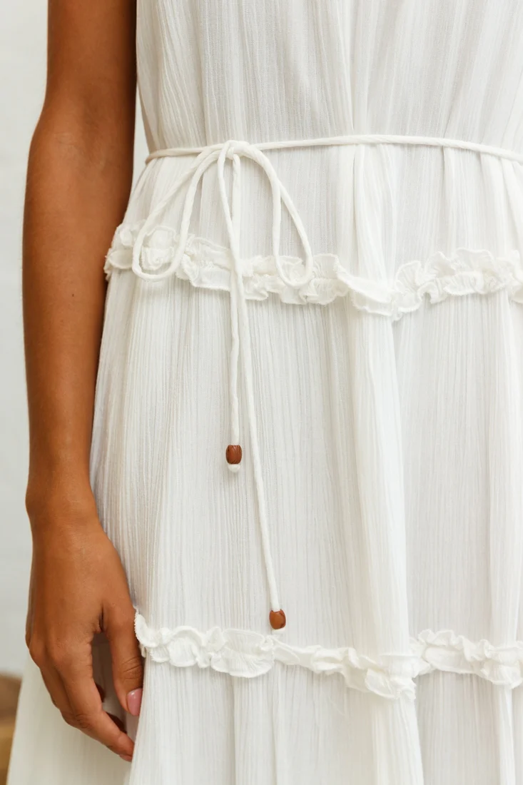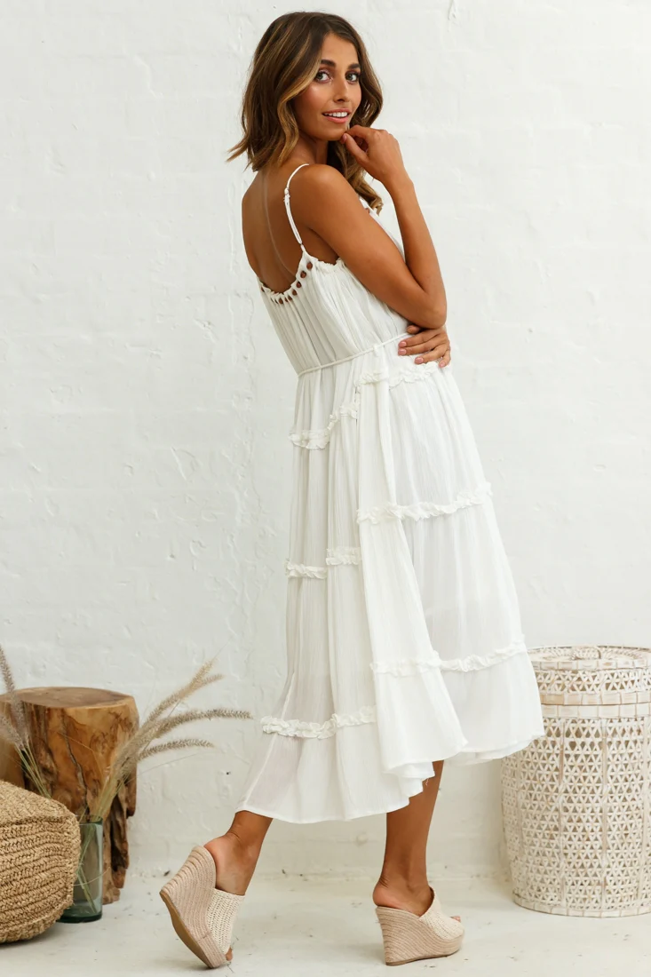 Daybreak Frill Trim Wooden Bead Midi Dress White