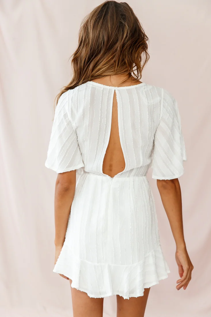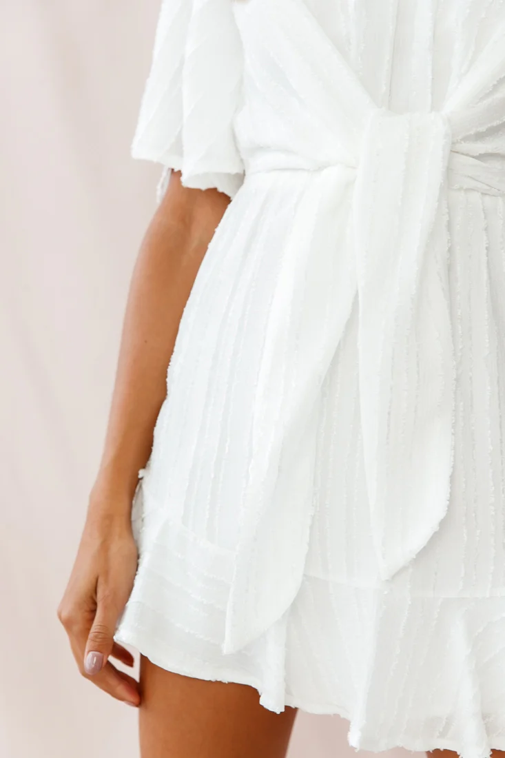 Knowing Tie-Front Frill Hem Dress White
