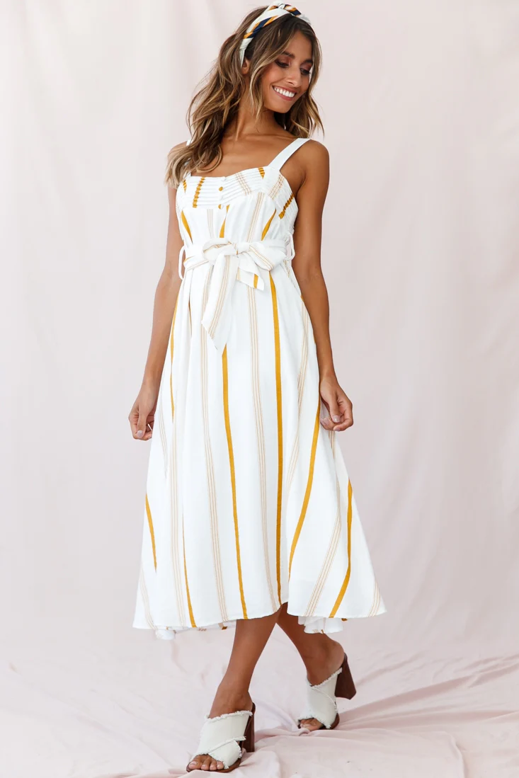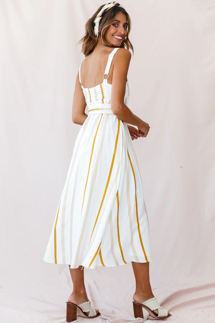 Colmar Wide Strap Midi Dress White Mustard Stripe