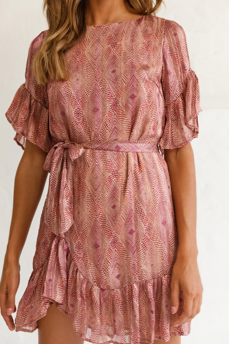 Azealia Ruffle Hem Dress Diamond Print Wine
