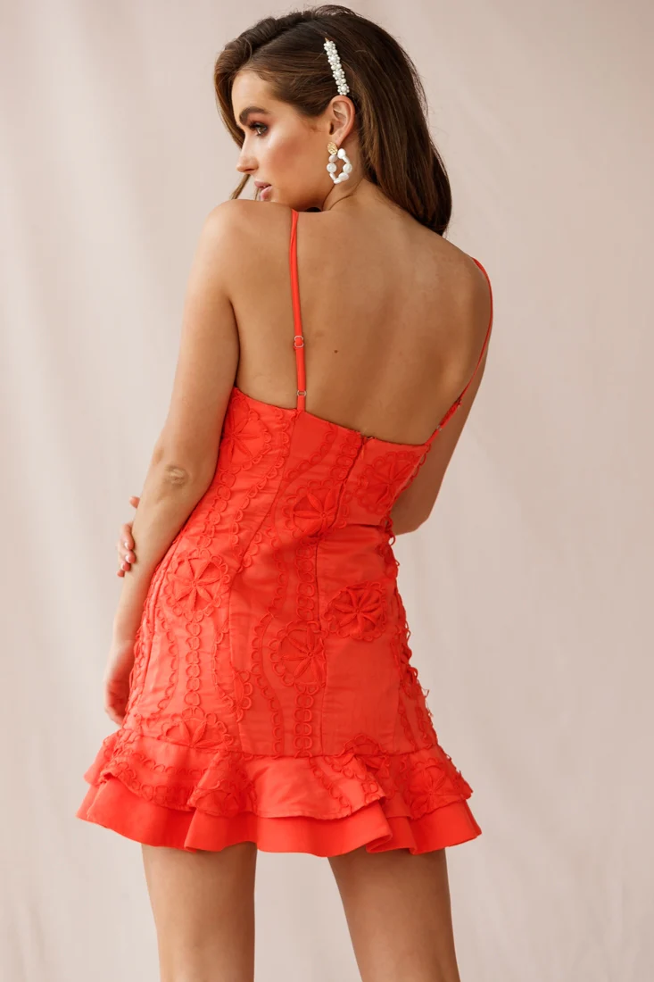 Virtue Cami Strap Embroidered Flounce Hem Dress Tangerine