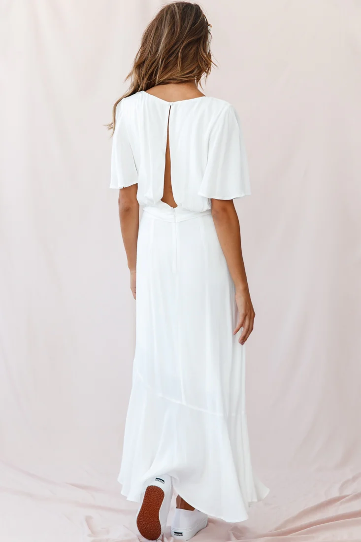 Sheridan Double Frill Sleeve Crochet Detail Dress White