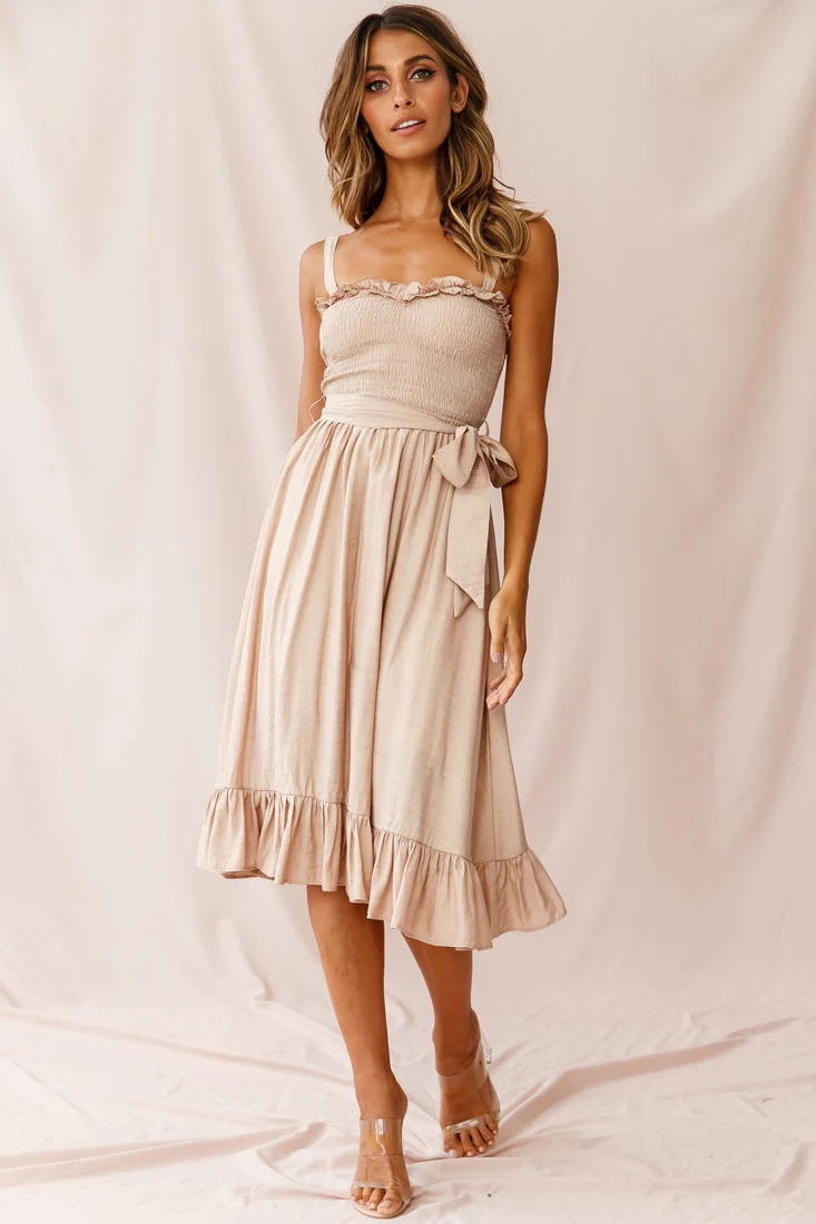 Sherry Tied Shoulder Shirred Bust Dress Yellow