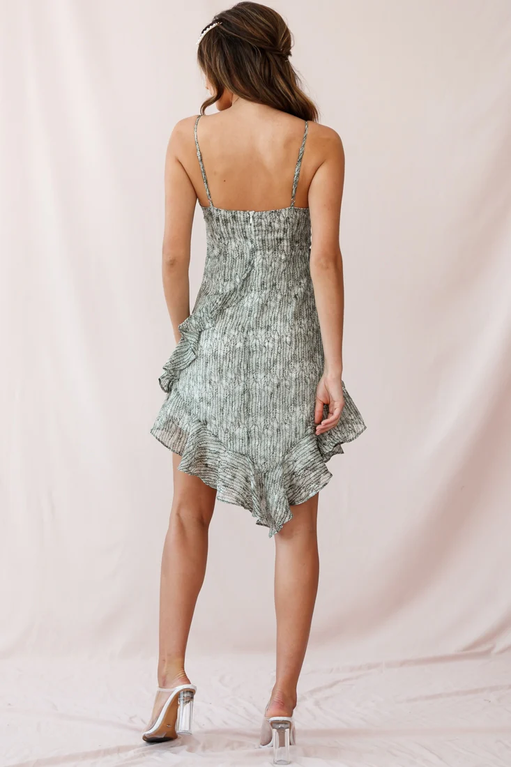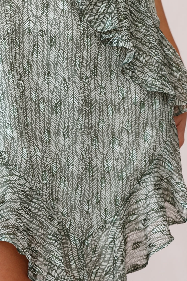 Kindred Ruffle-Trimmed V-Shaped Hem Dress Weave Print Olive