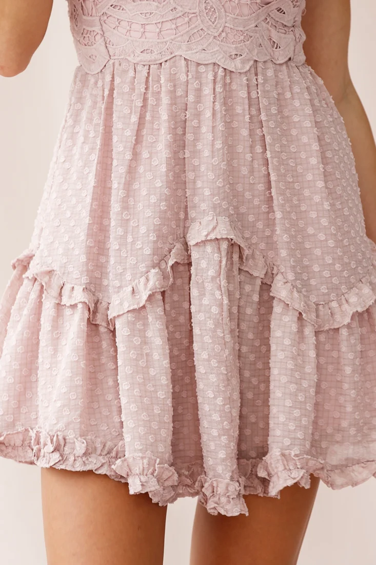 Dannah Ruffle Trim Lace Overlay Dress Mauve