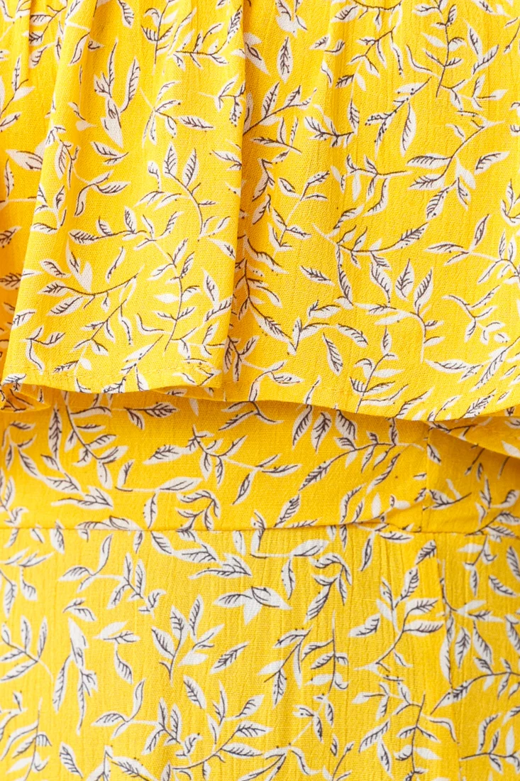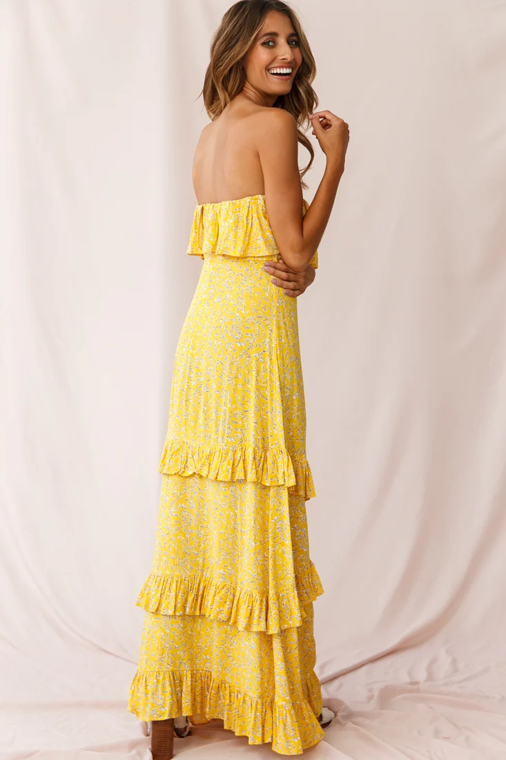 Kiya Layered Bandeau Maxi Dress Leaf Print Mustard