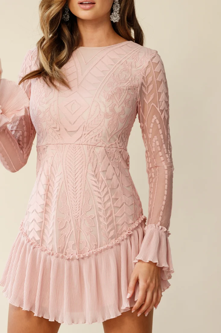 Briella Deep V-Neckline Crochet Detail Bust Dress Blush