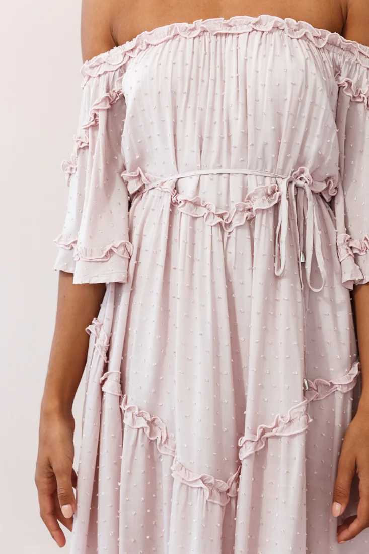 Renoir Off-Shoulder Frill Trim Midi Dress Mauve