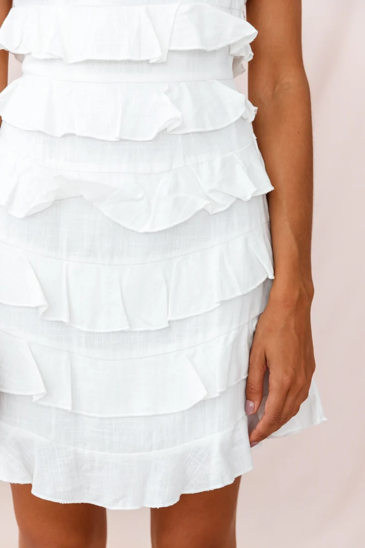 Ezra Eyelet Embroidery Ruffle Neckline Dress White