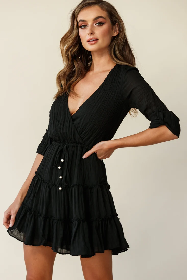 Bostyn Adjustable Sleeve Drawstring Waist Dress Black