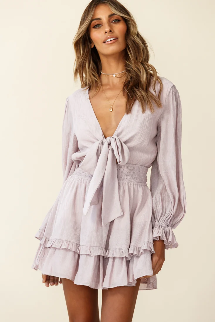 Anthea Bow-Tie Front Layered Frill Dress Blush