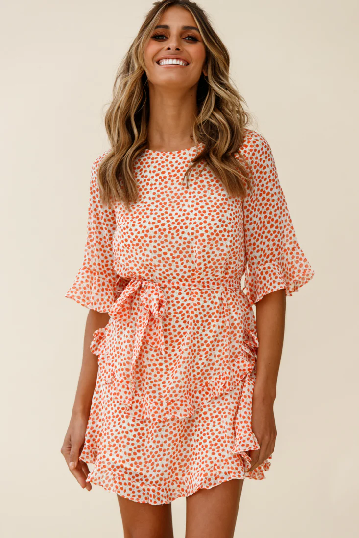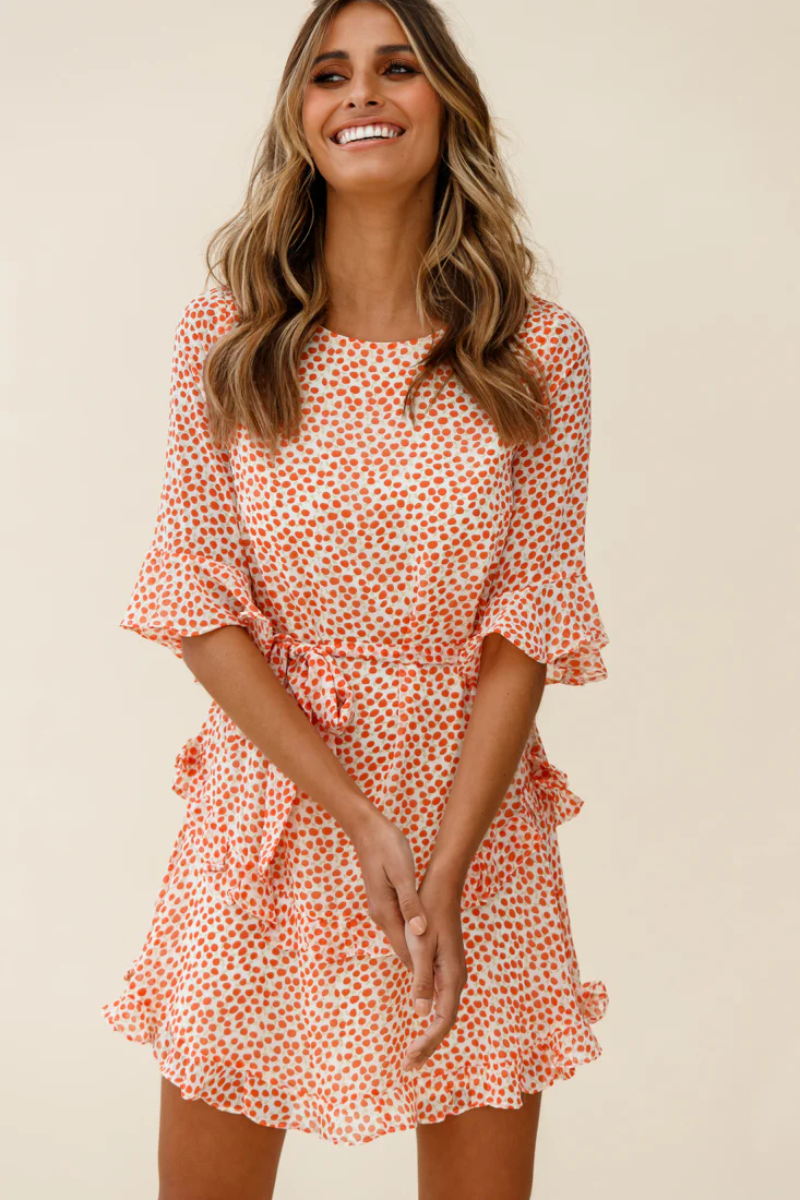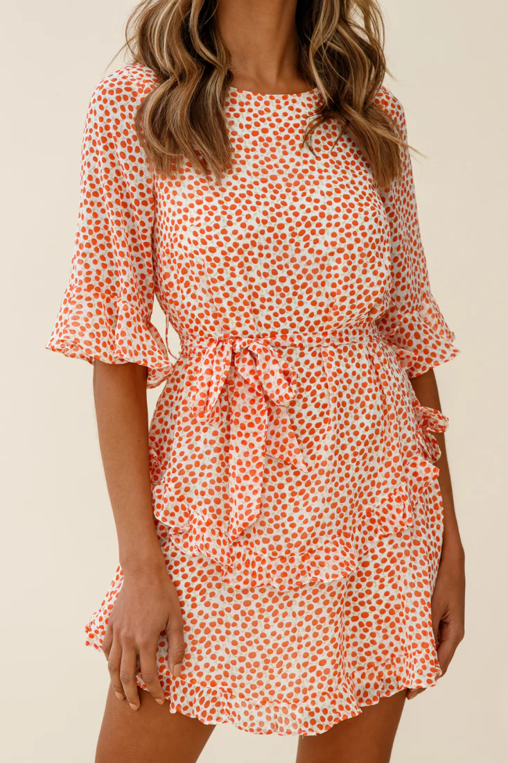 Wife Me Crew Neck Ruffle Insert Dress Polka Dot Orange