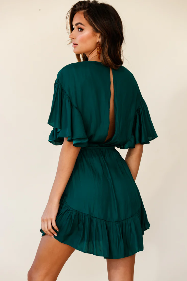 Milicent Ruffle-Trimmed Spaghetti Strap Dress Forest Green