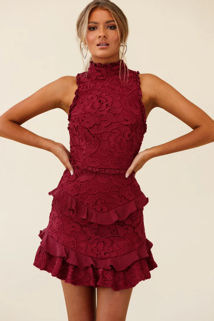 Greta Sleeveless Tiered Ruffle Chiffon Dress Rose