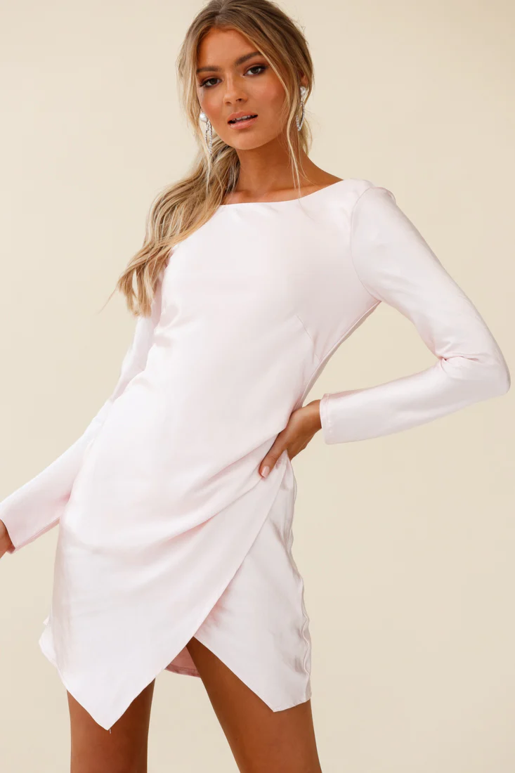 Thank Me Later Long Sleeve Open Back Dress Baby Pink