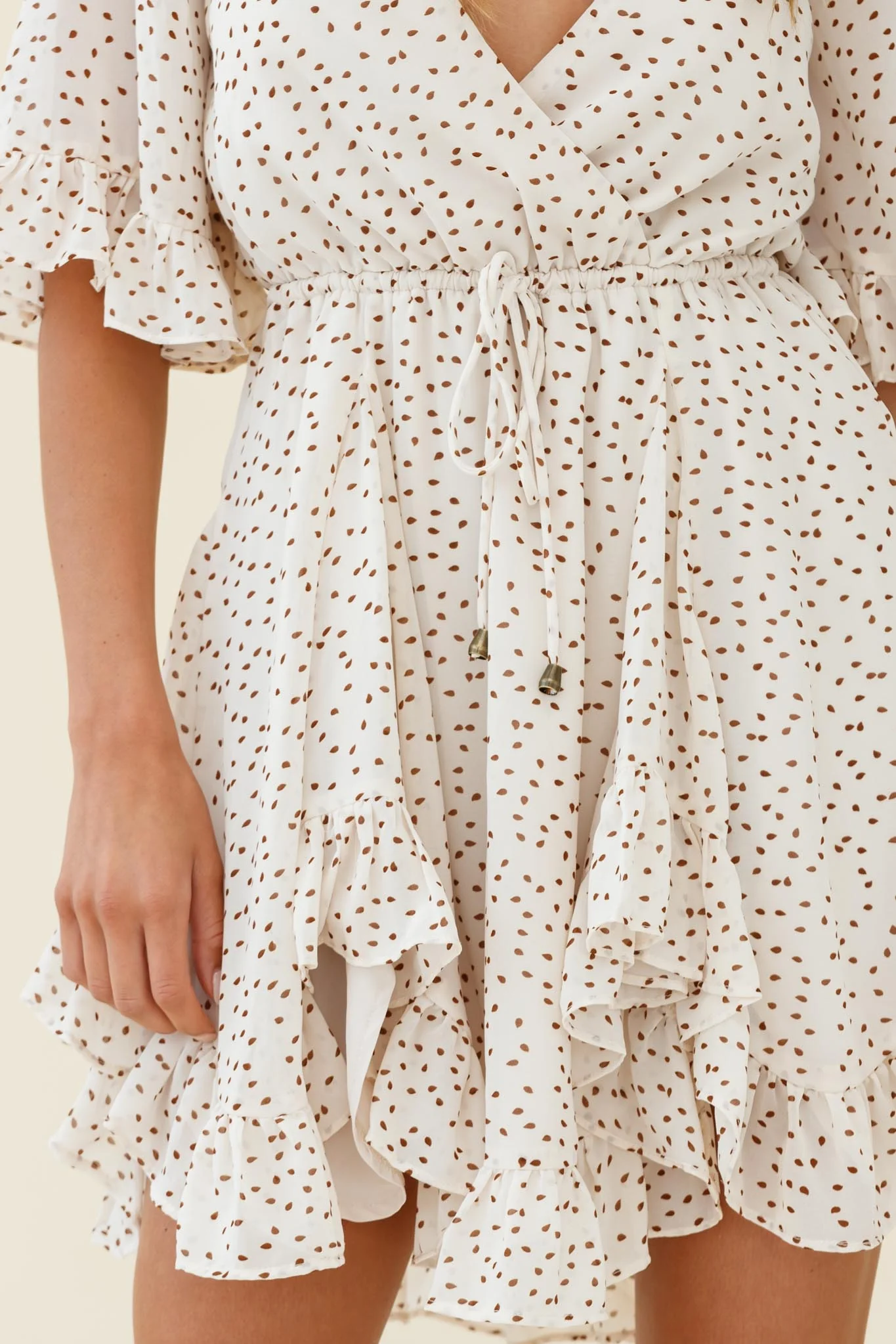 Dote On Me Frill Trim Strappy Back Dress Nature Print Beige