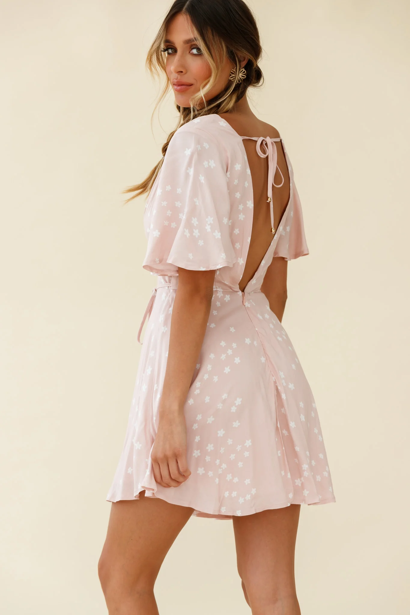 Dina V-Neckline Angel Sleeve Summer Dress Floral Print Pink
