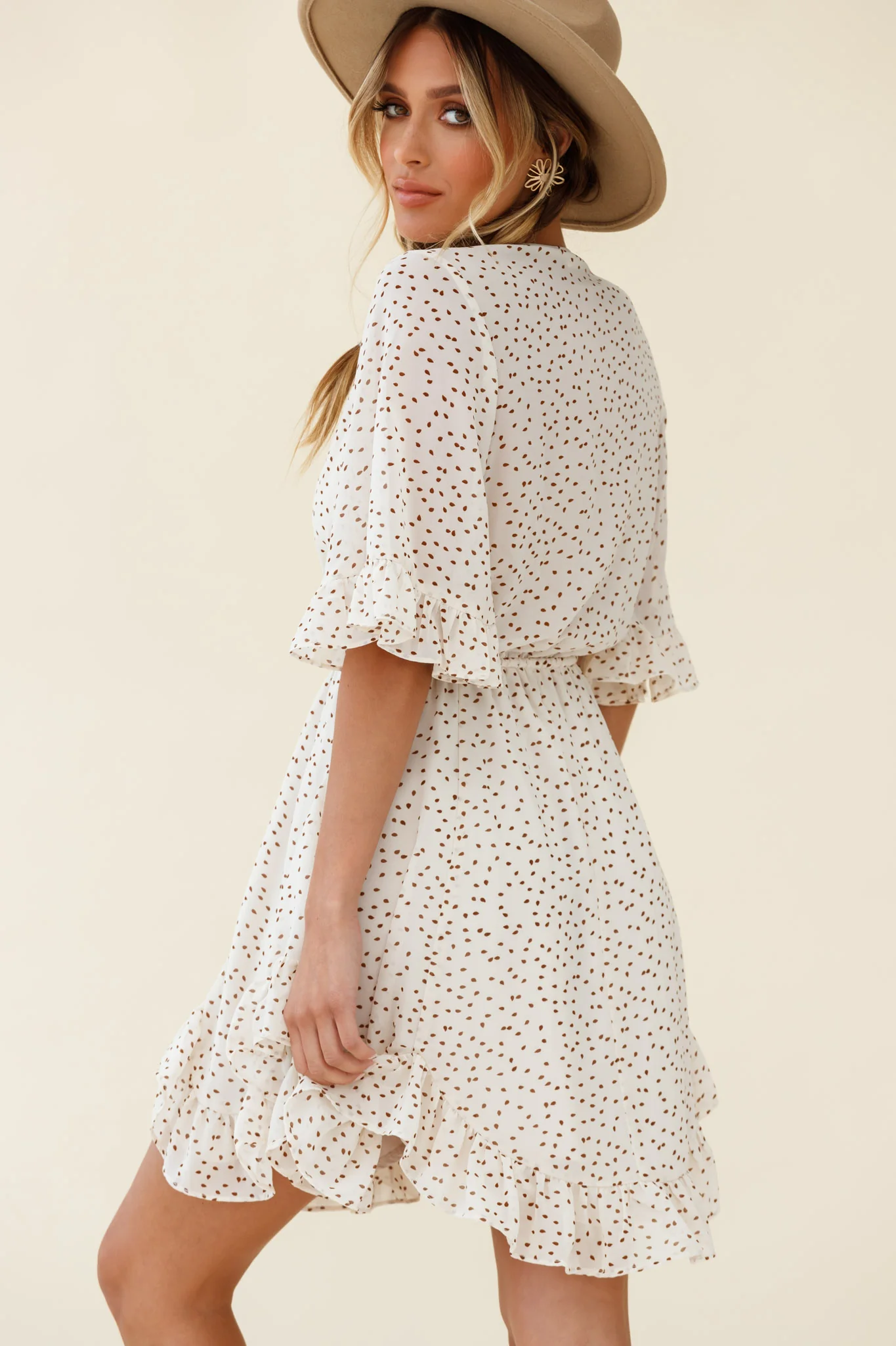 Stealing Hearts Flutter Sleeve Wrap Front Dress Floral Print White