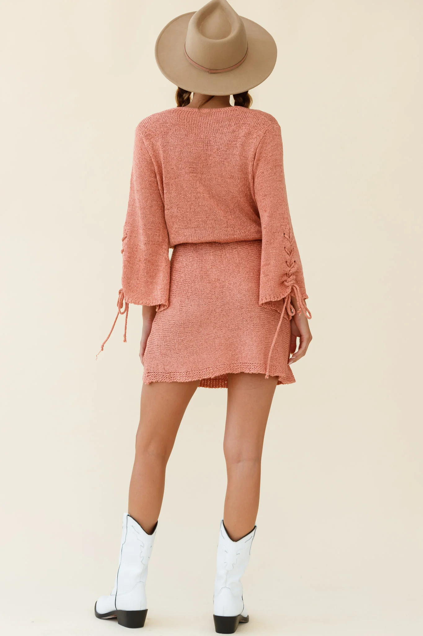 Indio Crochet Insert Deep V-Neckline Angel Sleeve Maxi Dress Pink