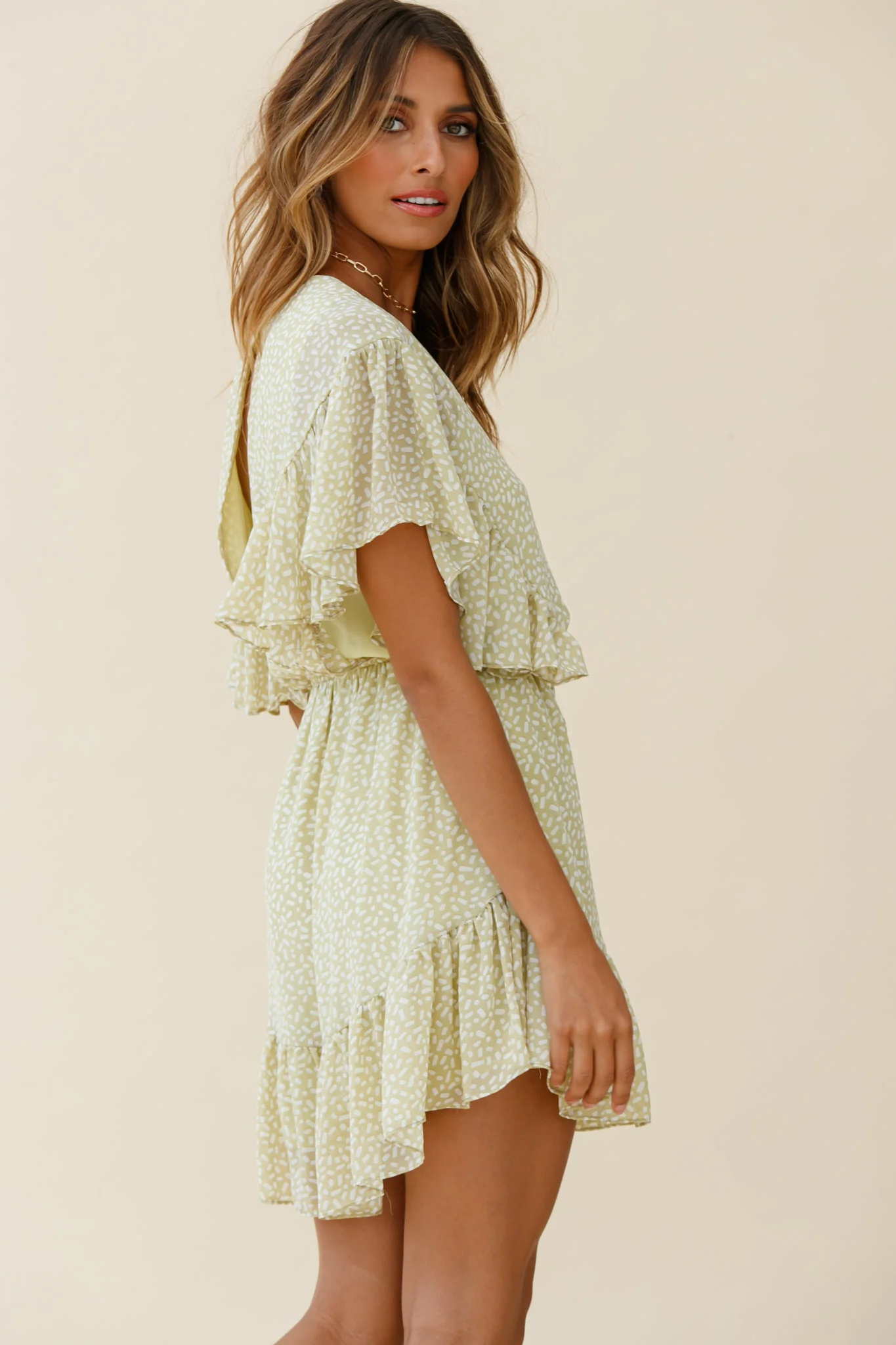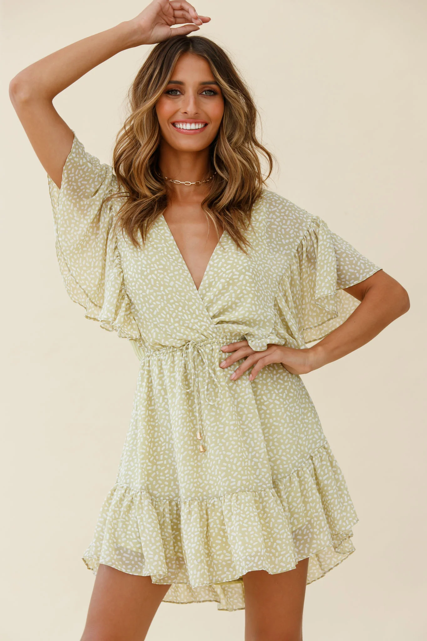 Esme V-Neckline Drawstring Waist Dress Sprinkle Print Lime
