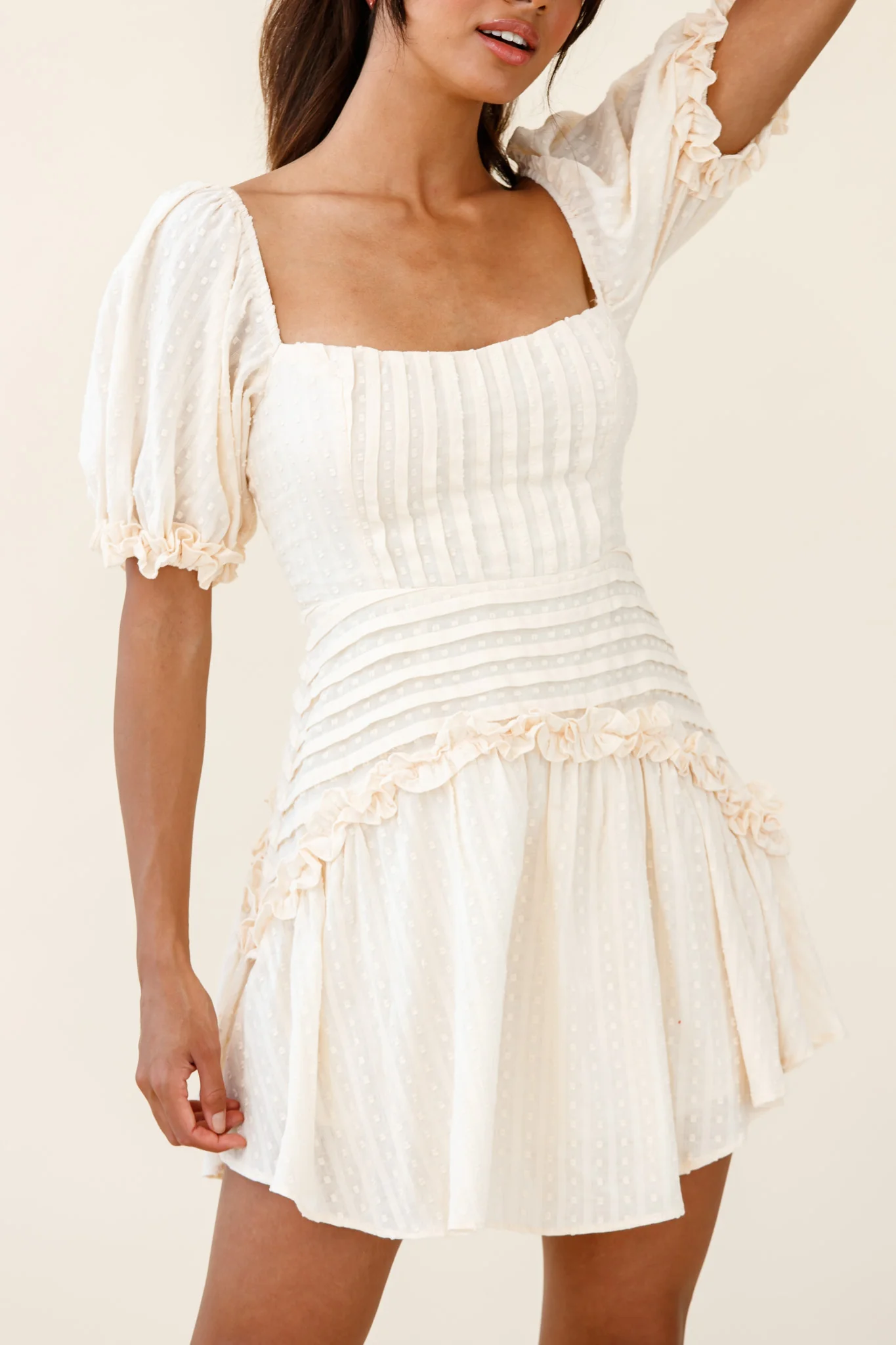 Jocelyn Short Sleeve Tied Cuff Layered Ruffle Dress Nude