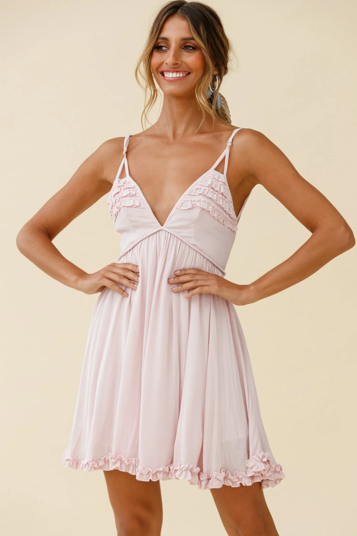 Dote On Me Frill Trim Strappy Back Babydoll Dress Baby Pink