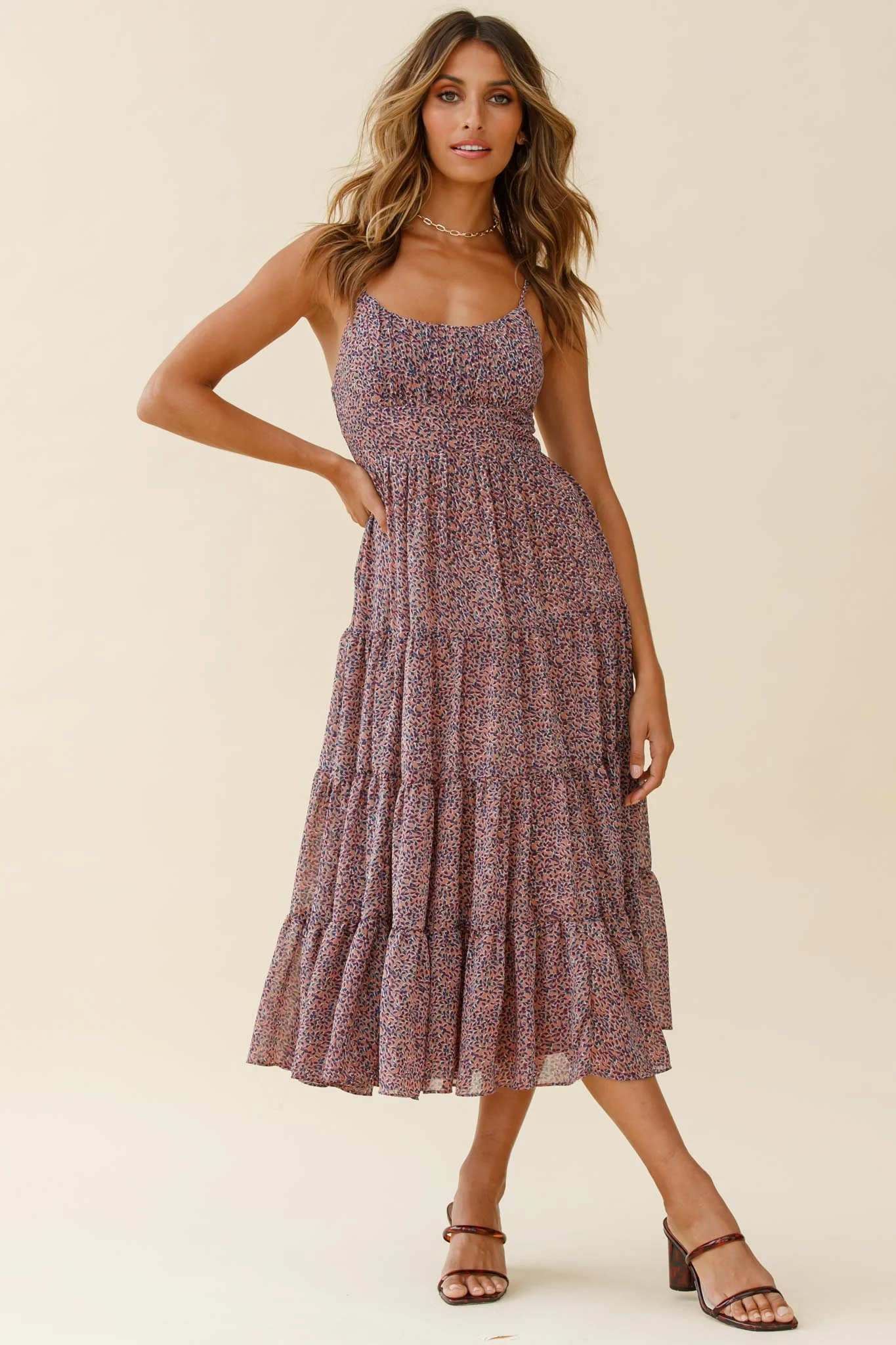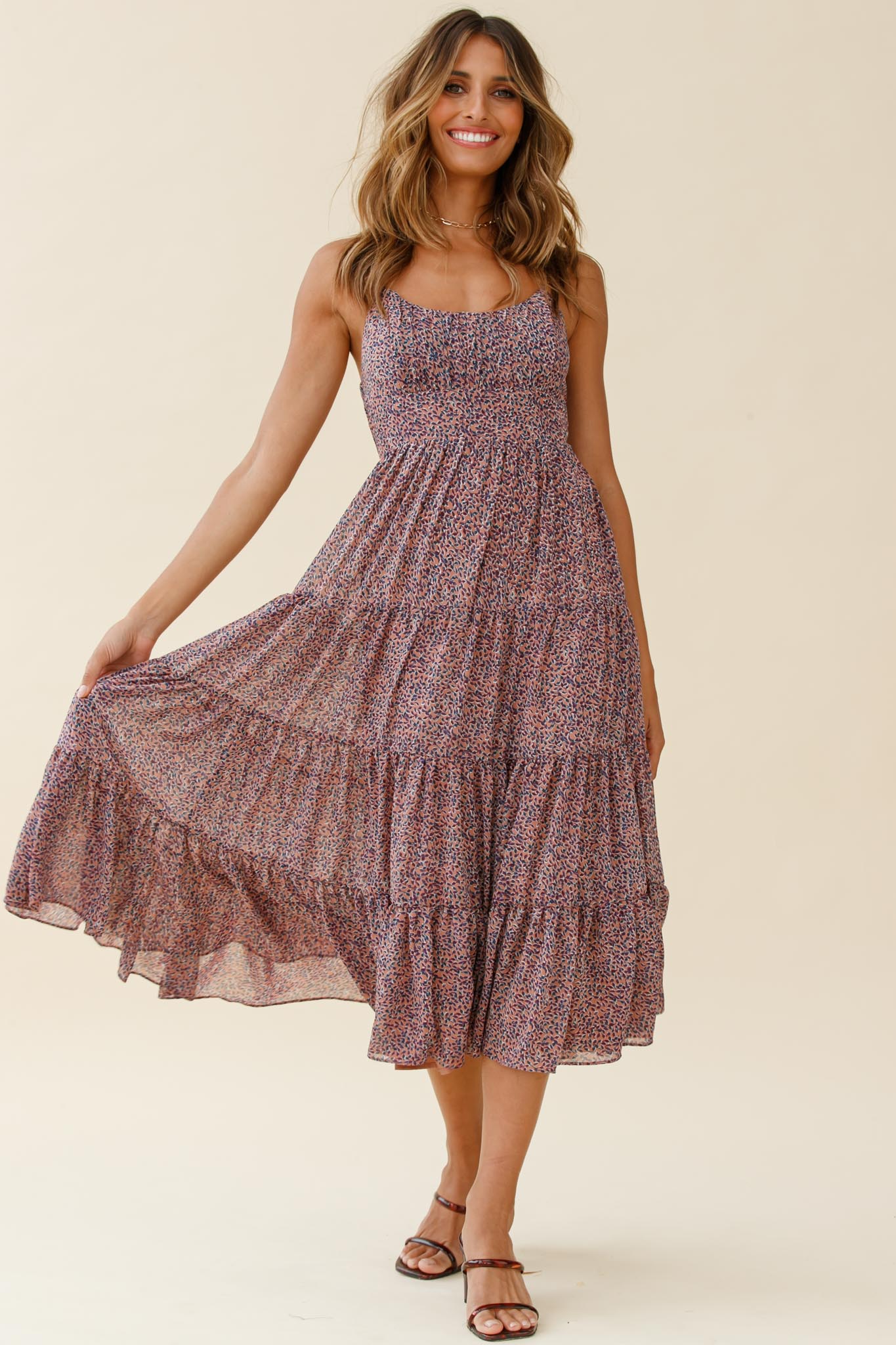 Go Get It Tied Shoulder Sun Dress Floral Print Navy