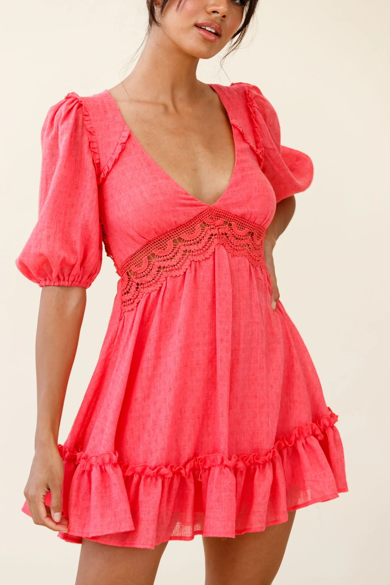 Everleigh Milkmaid Sleeve Exposed Back Dress Coral