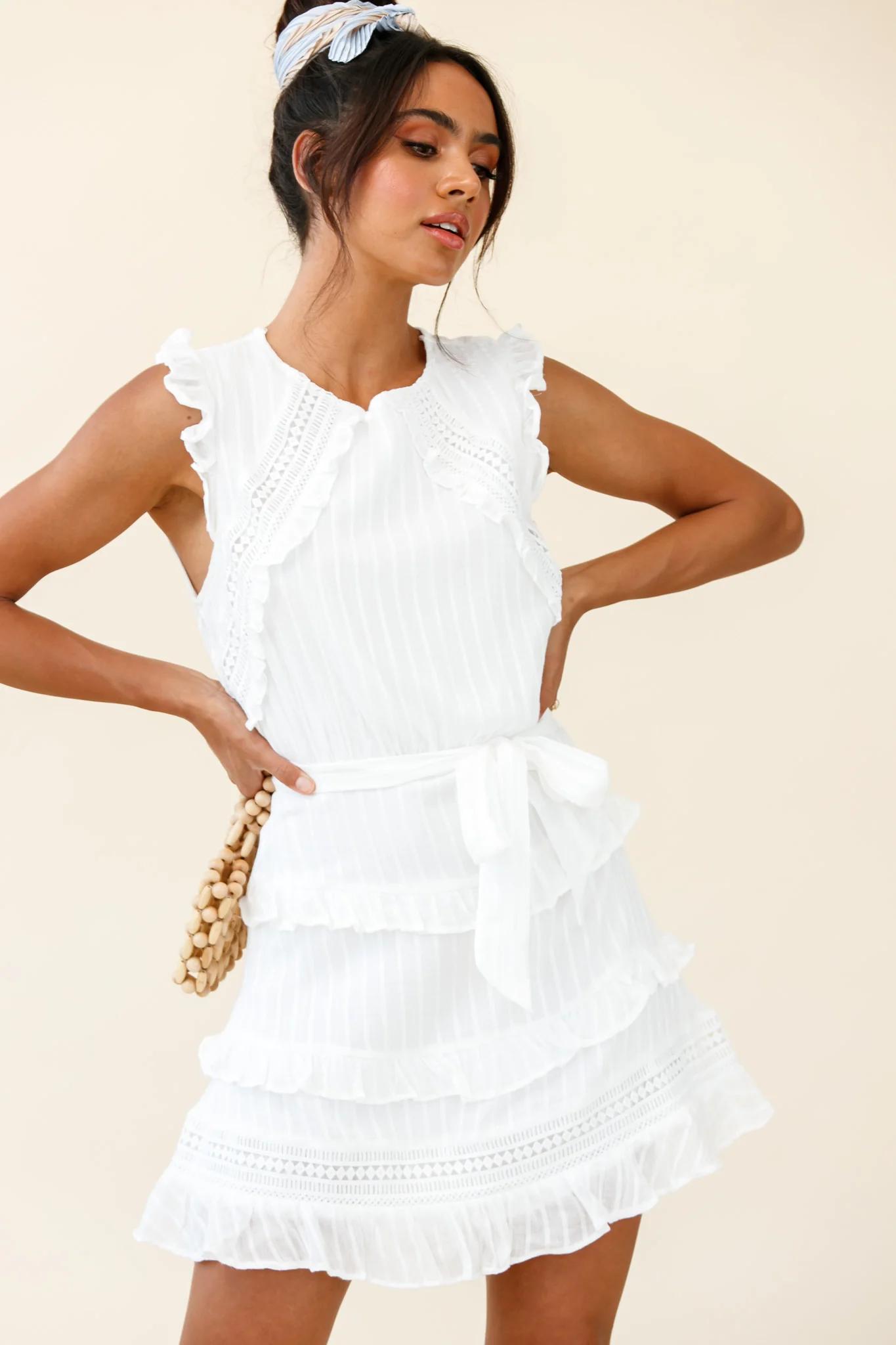 Meet Me At Sunset Bardot Neckline Frill Trim Dress Spotty White