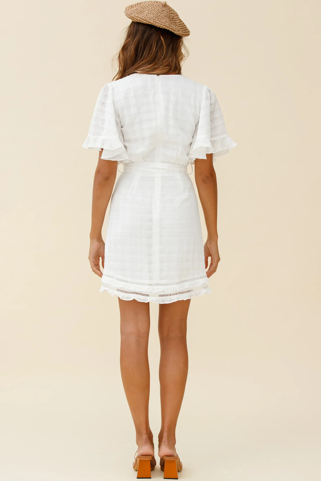 Angela Lace-Trimmed Bust Angel Sleeve Dress White