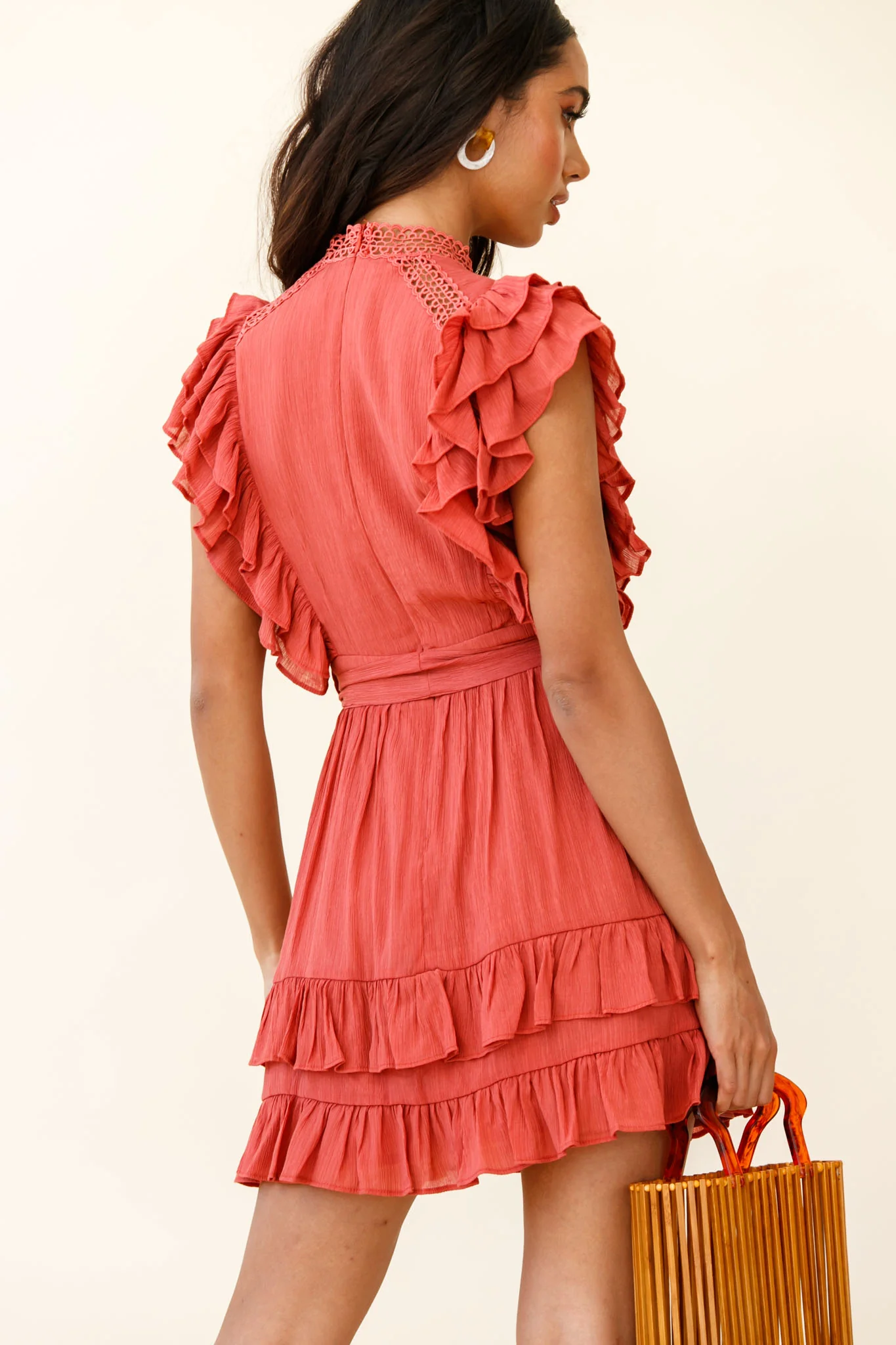 Melrose Sleeveless Crochet & Ruffle Detail Dress Red