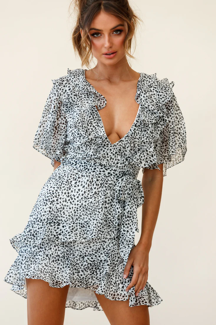 Sweet Talk Short Sleeve Ruffle Detail Dress Speckle Print White