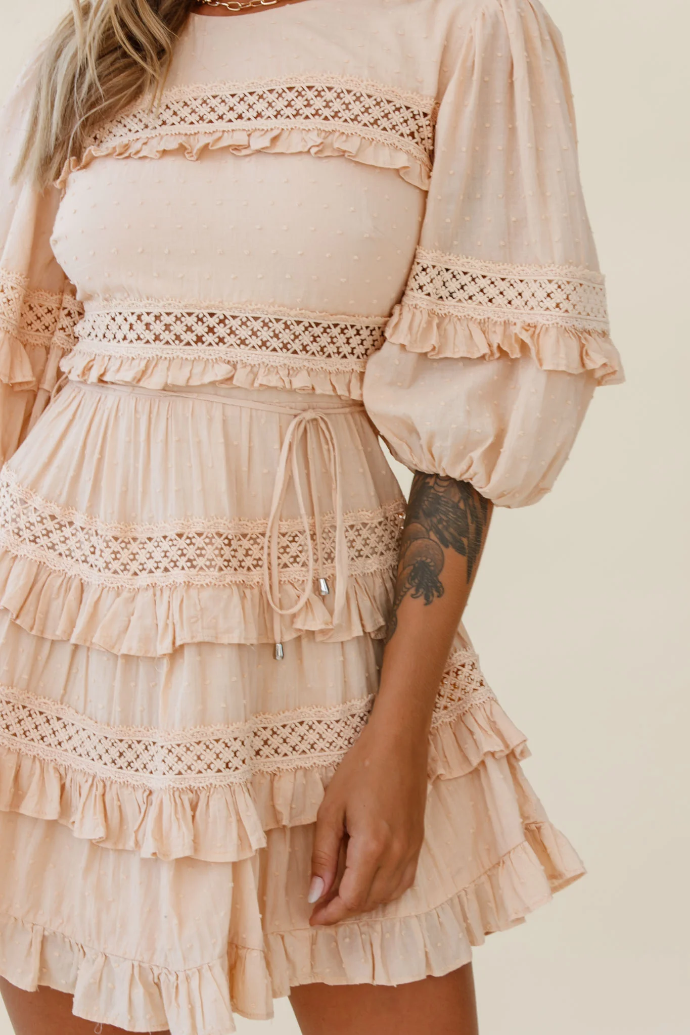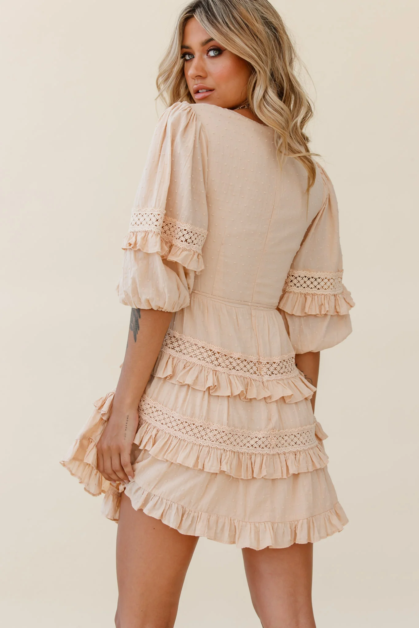 Dream About It Puff Sleeve Frill Dress Nude