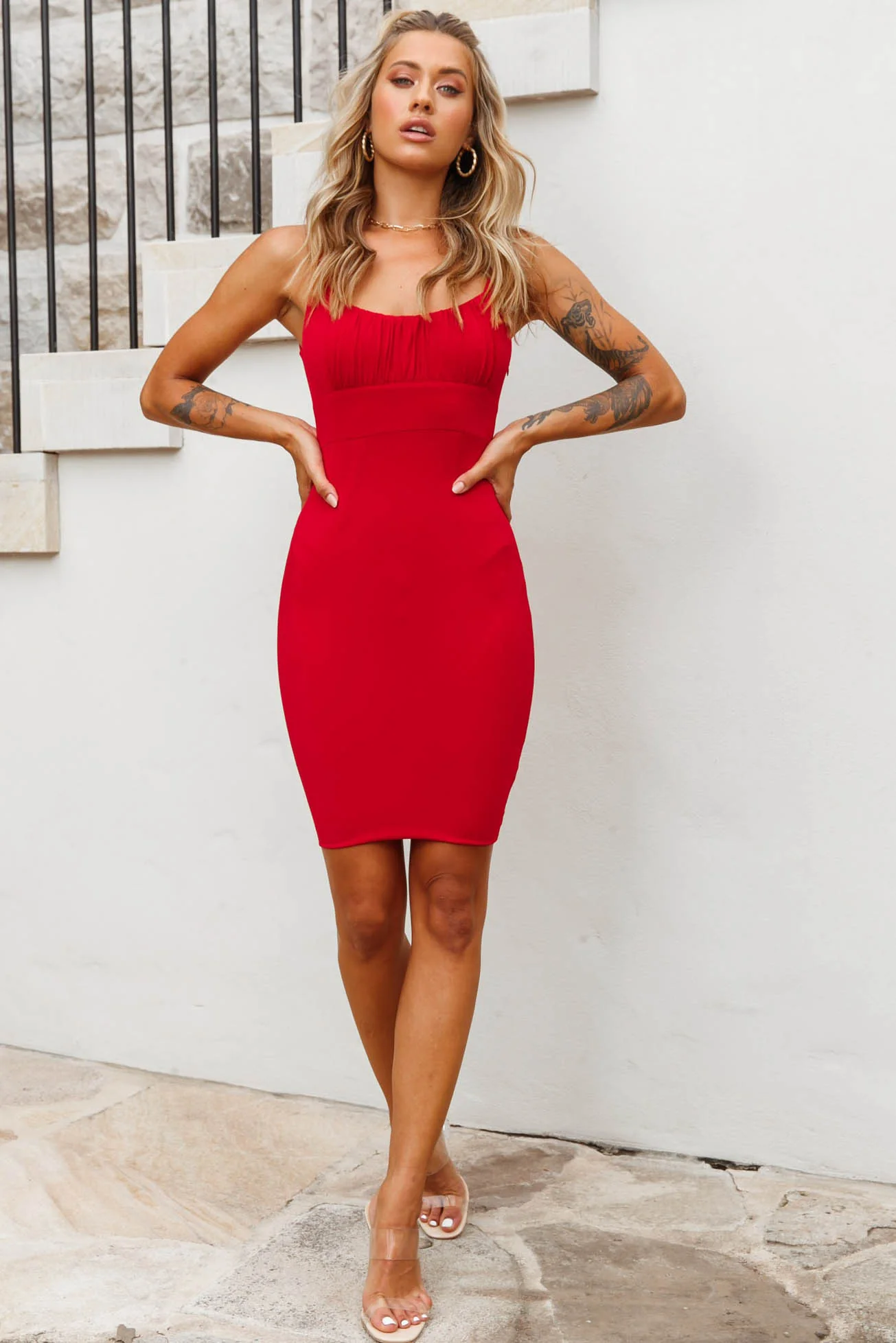 Let The Light In Ruched Bust Bodycon Mini Dress Red